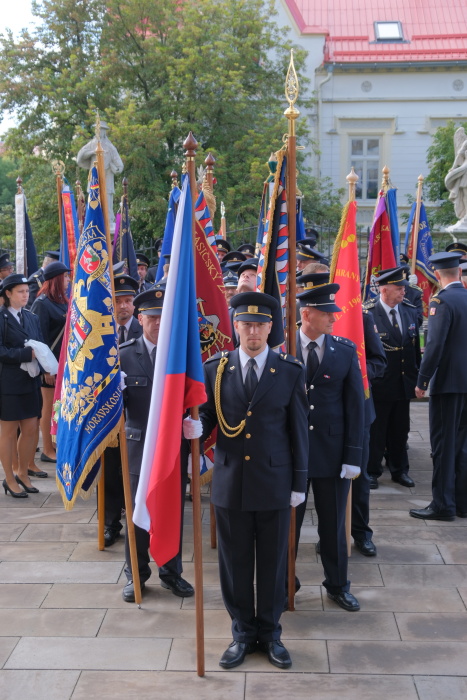 Prapory se sešly před frýdeckou bazilikou Navštívení Panny Marie, kde se konala slavnostní mše s požehnáním tří nových hasičských praporů – Územního odboru Hasičského záchranného sboru Moravskoslezského kraje (HZS MSK) ve Frýdku-Místku, Střední odborné školy a vyšší odborné školy (SOŠ a VOŠ) požární ochrany ve Frýdku-Místku a sboru dobrovolných hasičů z Lískovce.