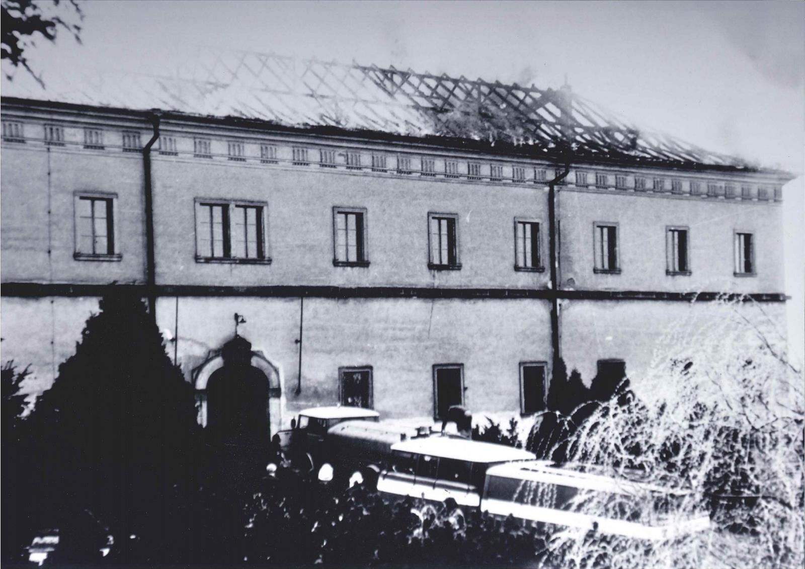 Od „nevinné“ hry dětí vznikl 27. dubna 1978 v místech, kde Svatohorské schody odbočují z přímého směru dovnitř areálu, požár. Ten se následně vzhledem k velmi hořlavé střešní krytině šířil a postupoval dále do objektu i směrem dolů po schodech. Vysoko šlehajícími plameny byly zasaženy dřevěné podlážky lešení v průčelí opravované části budovy, po nichž se požár přenesl na střechu severních ambitů a dále pak na sousední internát. Velmi rychlé šíření bylo zapříčiněno vysokou hořlavostí šindele na střeše a třistaletým usazeným prachem pod střechou. Požár pravděpodobně vznikl okolo patnácté hodiny a byl telefonicky oznámen na Ohlašovnu požárů. Na místo se postupně dostavilo přes tři sta hasičů z více než čtyřiceti profesionálních a dobrovolných jednotek. K zásahu byli povoláni hasiči z okresů Příbram, Beroun, Praha-západ, Kolín, Kladno, Písek a Strakonice a desítky dobrovolných jednotek z širokého okolí. Na zdárné likvidaci požáru a záchraně cenného inventáře se podílely i další subjekty, zejména Báňská záchranná stanice Příbram, technické služby měst Příbram a Dobříš, Vězeňské nápravné zařízení Bytíz a vojenské útvary Příbram a Jince.