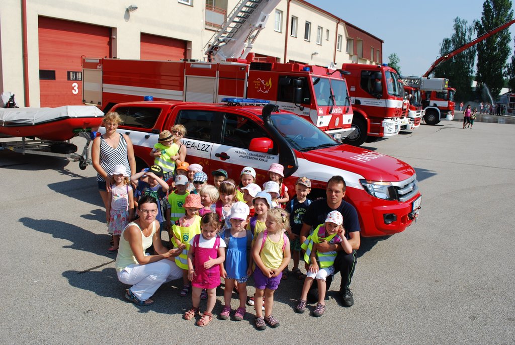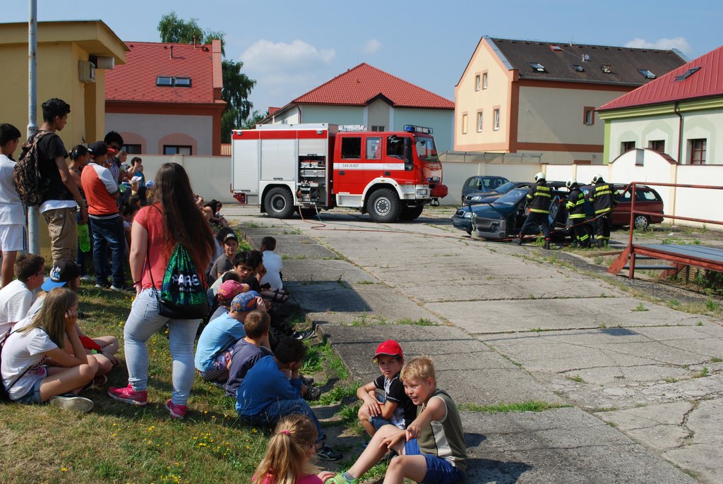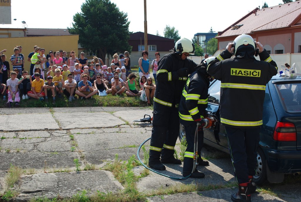 Zároveň jindřichohradečtí profesionálové využili slunečné počasí a vyjeli s veškerou svoji technikou z garáží ven na dvůr, aby byla pro všechny děti líp k prohlédnutí. Skutečnou práci hasičů pak děti viděly při ukázce vyprošťování osoby z havarovaného auta, kde mnohé byly překvapeny, jak "hasičské nůžky" umí silné plechy poměrně snadno rozstříhat.