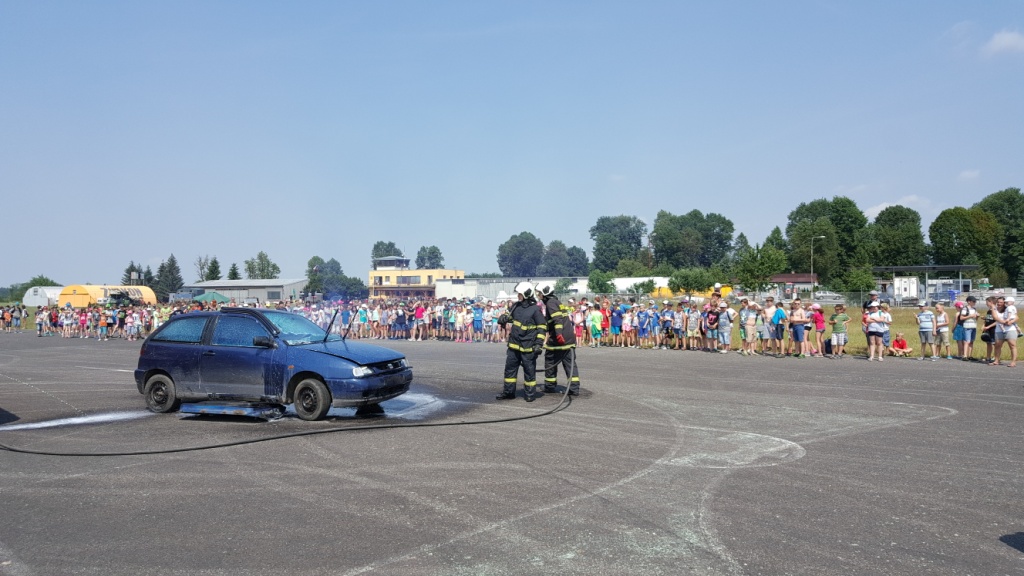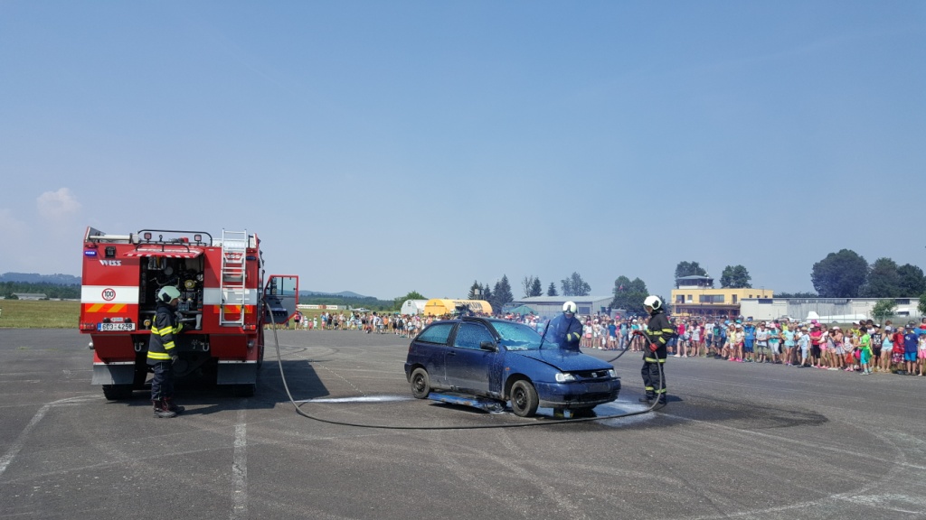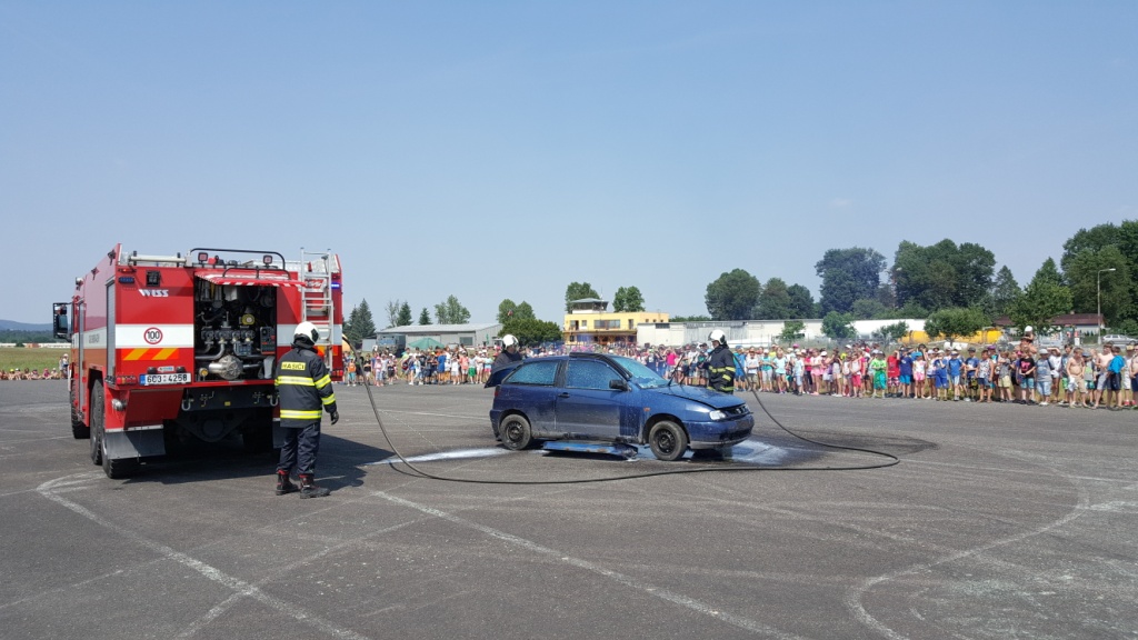 Žhavé letní počasí přispělo ke zdárnému průběhu celé povedené akce. Letecký den si přišlo společně s námi užít několik stovek malých školáků a předškoláků. K vidění byla zásahová technika, ukázky činnosti jednotlivých přítomných složek IZS, let vrtulníku a další.