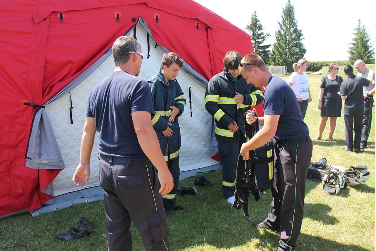 Hasiči dětem také představili projekt „Hoří! Už víš, co dělat?“ Jde o speciální stan, který umožňuje simulování podmínek požáru. Stan je vybaven vyvíječi kouře, zábleskovými světly a zvukovou aparaturou. Tento projekt byl realizován díky firmě TPCA Ovčáry. Jedním z mnoha poslání hasičů je také předávání zkušeností, jak se chovat v situacích, kdy je ohrožen lidský život. Pomocí výcvikové mlhy, která je neškodná, si tak mohli žáci i s pedagogickým dozorem vyzkoušet, jak je obtížné se orientovat ve zcela zakouřené místnosti.