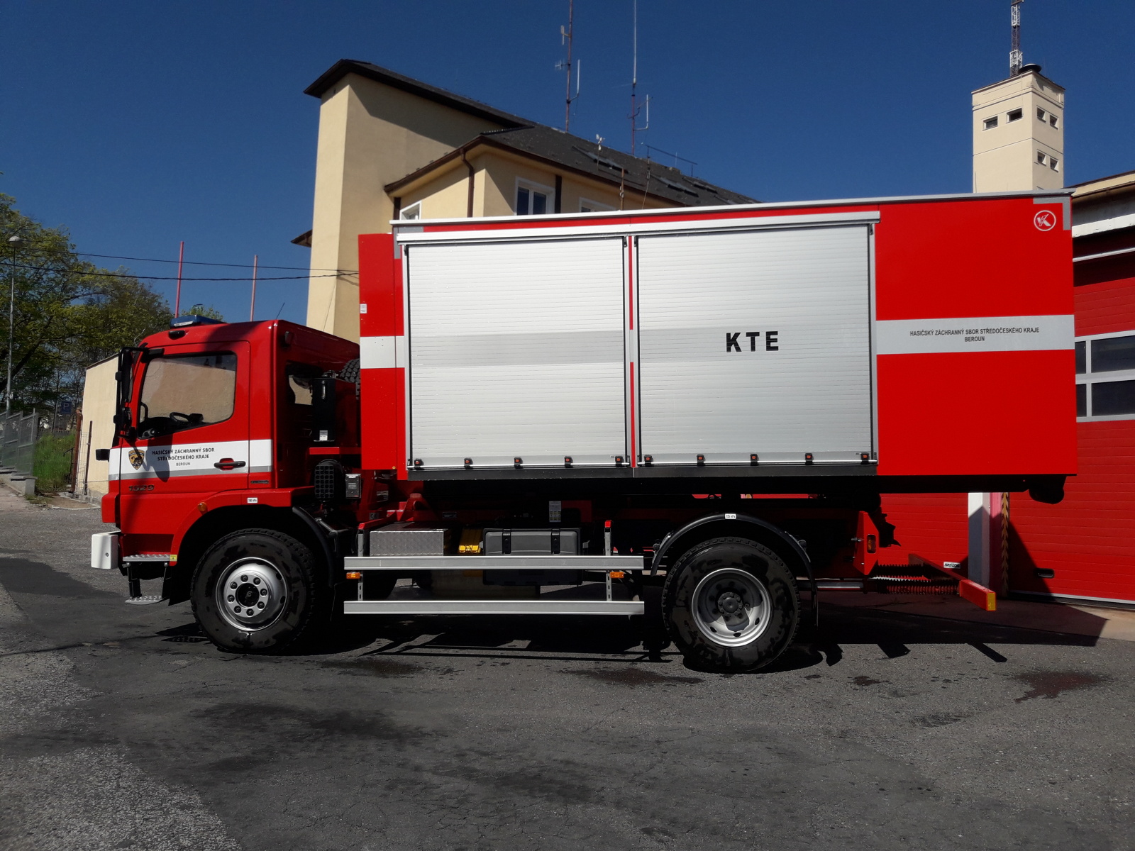 Nový technický kontejner, hmotnostně a rozměrově přizpůsobený nosiči kontejnerů hmotnostní třídy „M“ (Mercedes-Benz Atego), nahradí v Berouně celkem tři menší a technicky již dosluhující kontejnery. KTE nově slučuje chemický, protiplynový a kontejner na ropné havárie. Tímto sloučením si berounští hasiči výrazně zvýšili taktické možnosti nasazení kontejneru a zároveň si významně zjednodušili a urychlili vlastní manipulaci při výjezdu této pomocné techniky.