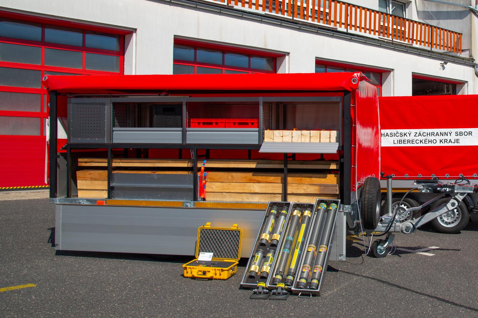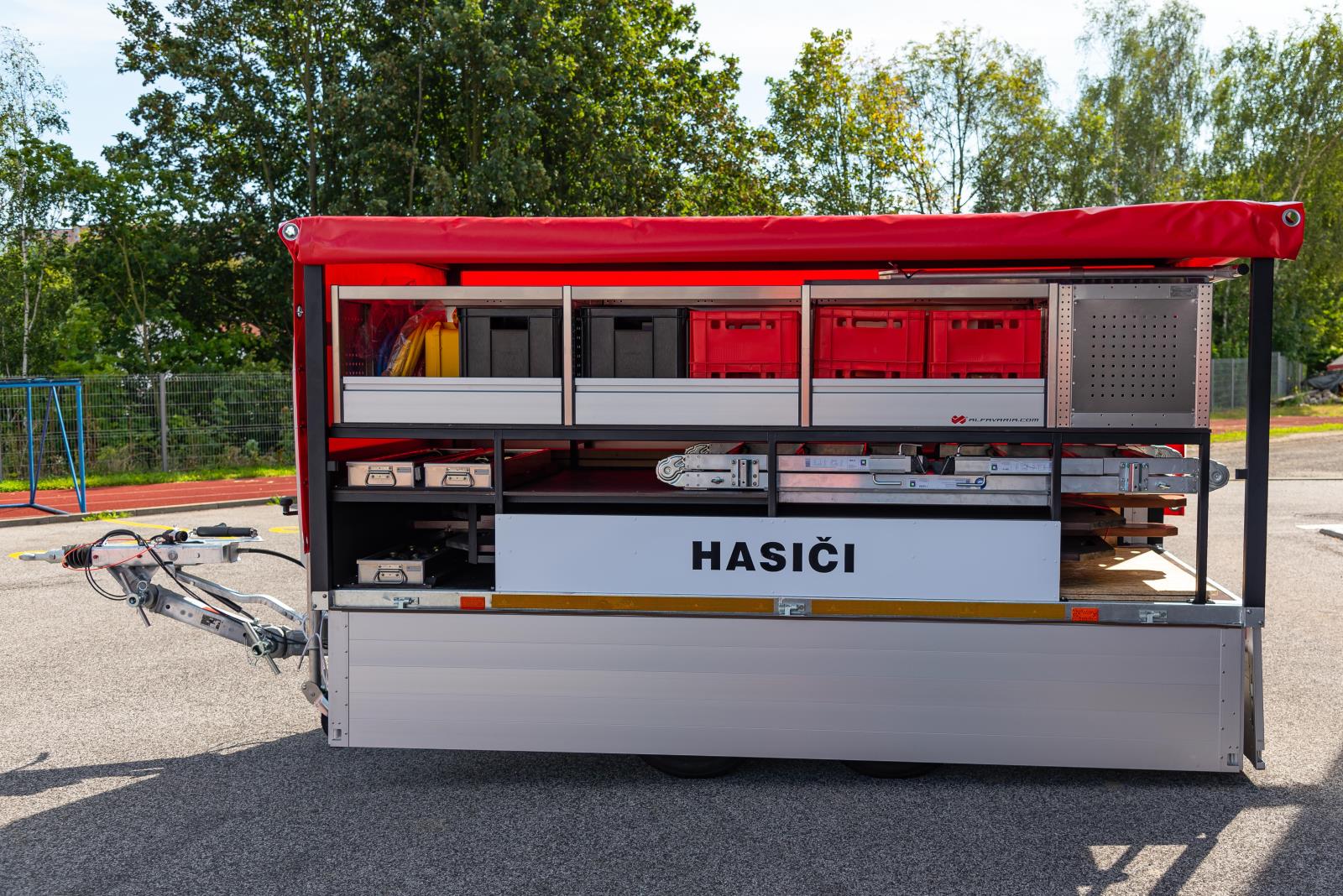 HZS Libereckého kraje v letošním roce pořídil tři přívěsné vozíky z Fondu zábrany škod České kanceláře pojistitelů (dále jen FZŠ), které dodala společnost Alfavaria Group, s.r.o. za celkovou cenu 1 523 390 Kč s DPH. Jedná se o dvounápravové vozíky s největší technicky přípustnou hmotností 3000 kg. Vozíky jsou určeny k převozu věcných prostředků pro stabilizaci a pro tento účel byla součástí dodávky zástavba uvedené výbavy, která svým provedením zajistila zpevnění konstrukce vozíků. Konstrukce zástavby je tvořena variabilními prvky, které umožňují další rozšíření výbavy dle potřeb HZS Libereckého kraje.