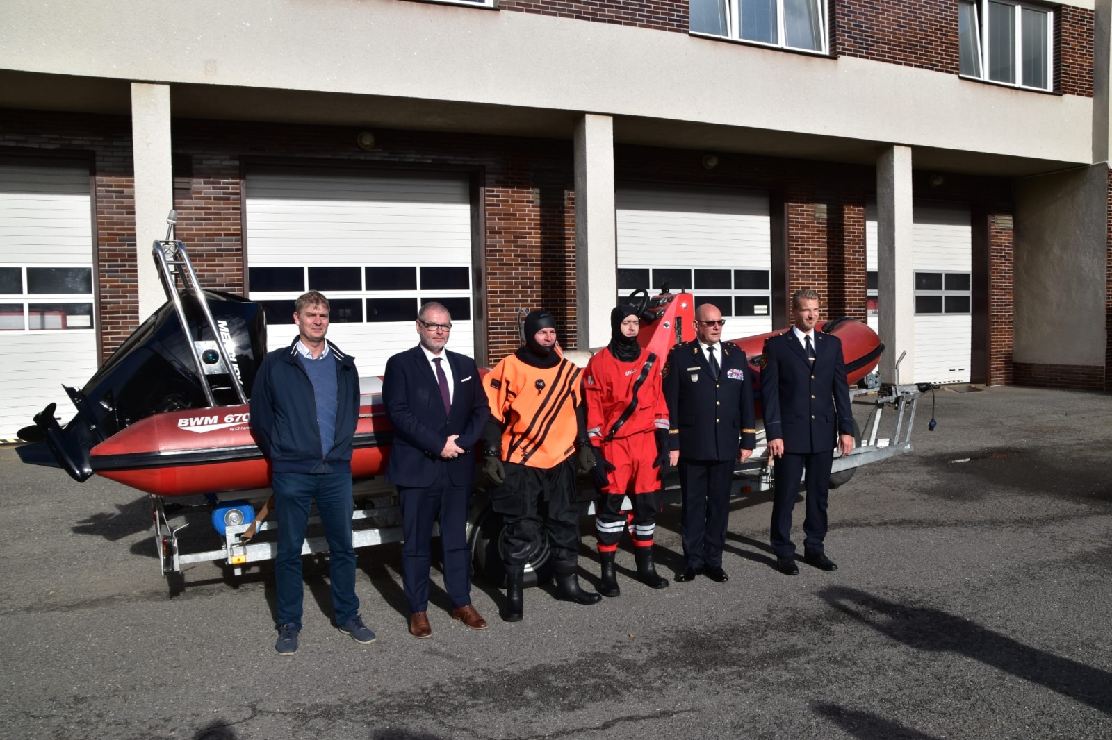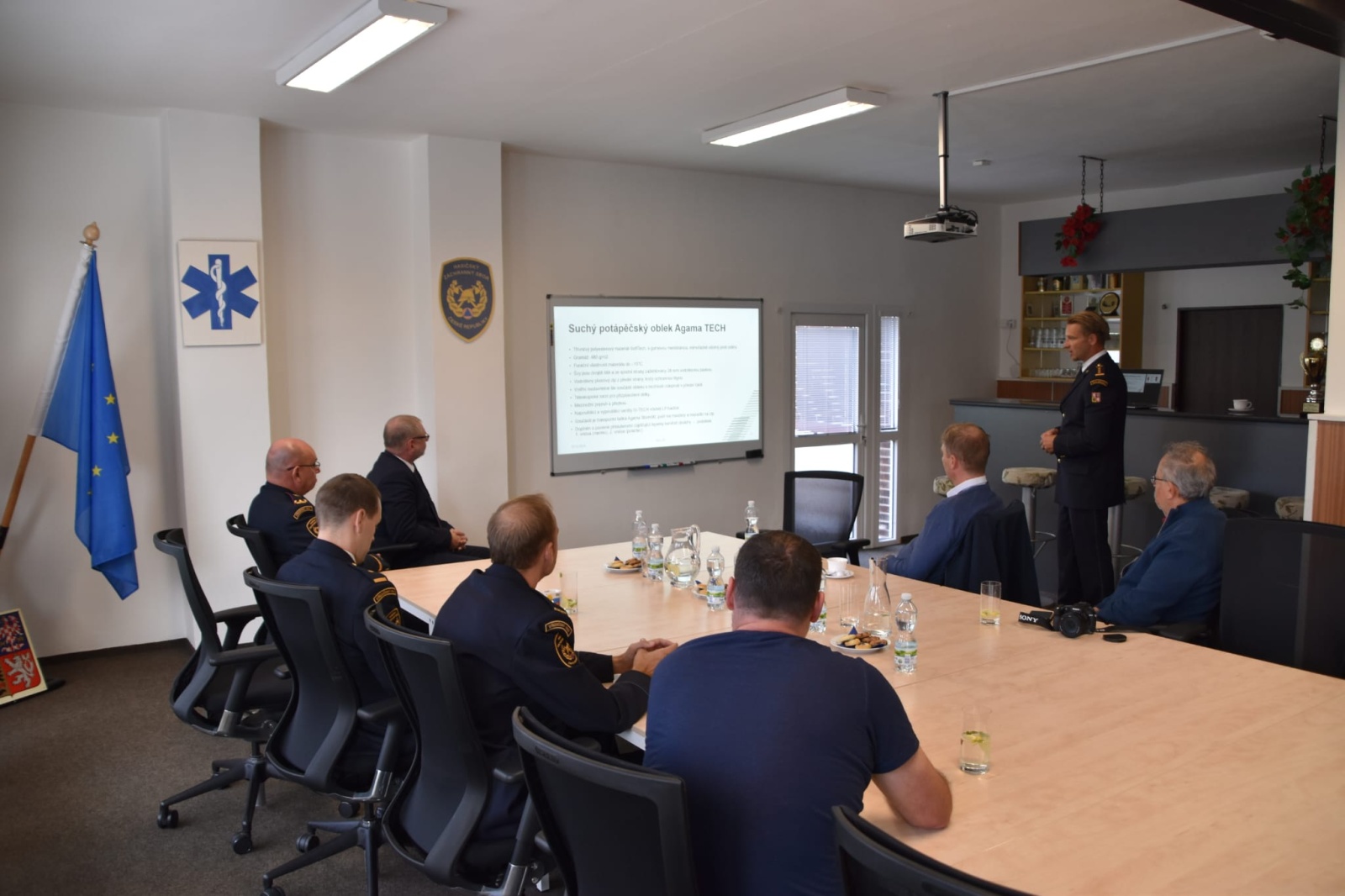 Ve čtvrtek 10. října zavítali na centrální hasičskou stanici Příbram zástupci státního podniku Povodí Vltavy, aby za přítomnosti ředitele HZS Středočeského kraje brig. gen. Ing. Miloslava Svatoše předali příbramské jednotce dva nové suché obleky. Obdobně jako před rokem, kdy příbramský profesionální sbor dostal od Povodí Vltavy do bezúplatného užívání norné stěny, se předání zúčastnil generální ředitel RNDr. Petr Kubala.