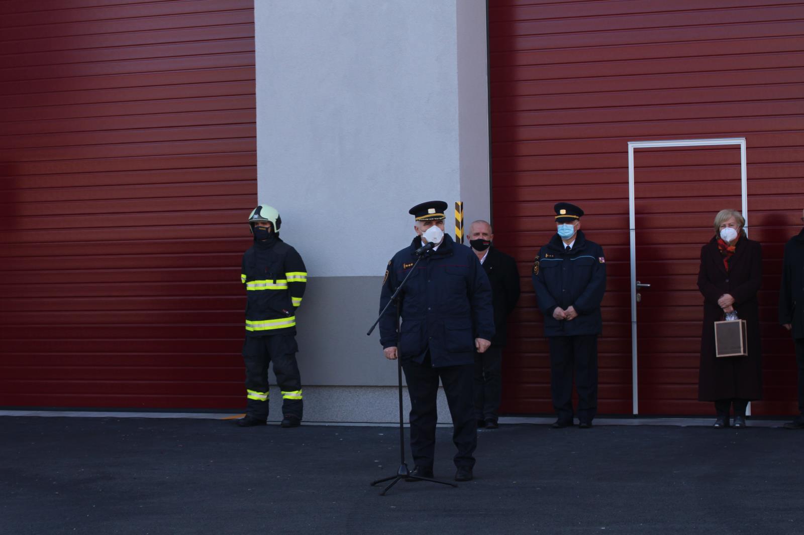 Slavnostního přestřihnutí pásky se pak ujali: generální ředitel HZS ČR genpor. Ing. Drahoslav Ryba, ředitel HZS Jihočeského kraje plk. Ing. Lubomír Bureš, za realizátora stavby firmu Strabag, a. s., Ing. Jiří Polák, MBA, primátor statutárního města České Budějovice Ing. Jiří Svoboda a někdejší hejtmanka Jihočeského kraje Mgr. Ivana Stráská..JPG)