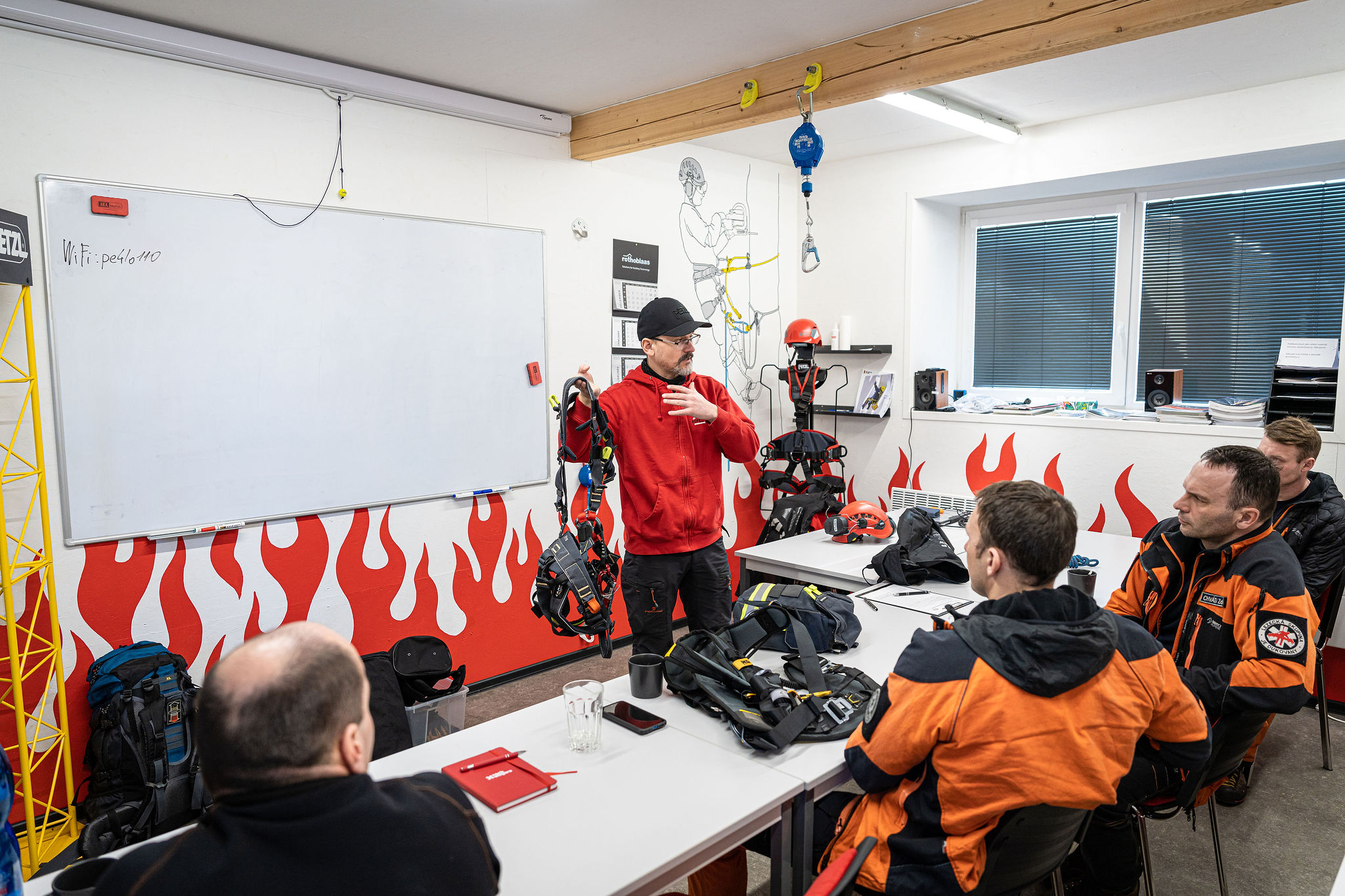 Cílem workshopu bylo seznámení s novými prostředky pro lezecké a záchranářské aktivity ve výškách, které ještě nejsou běžně používané a využívané v ČR.