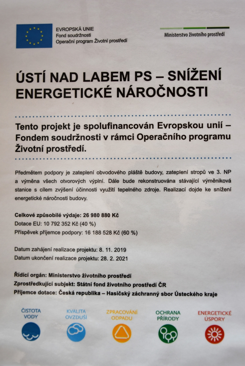 Na centrální požární stanici ve Všebořicích se uskutečnila investiční akce za finanční podpory z Operačního programu životního prostředí Evropské unie a Nová zelená úsporám.