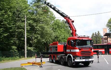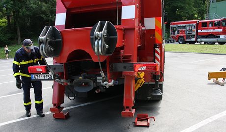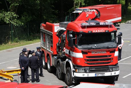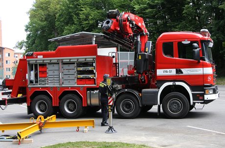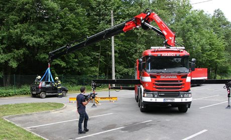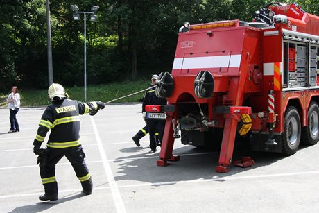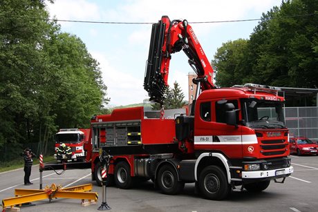 Po předání klíčů následovala ukázka vyprošťovacího automobilu při vytažení osobního vozidla jeřábovým ramenem a tažení nákladního vozidla navijákem.