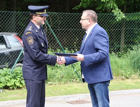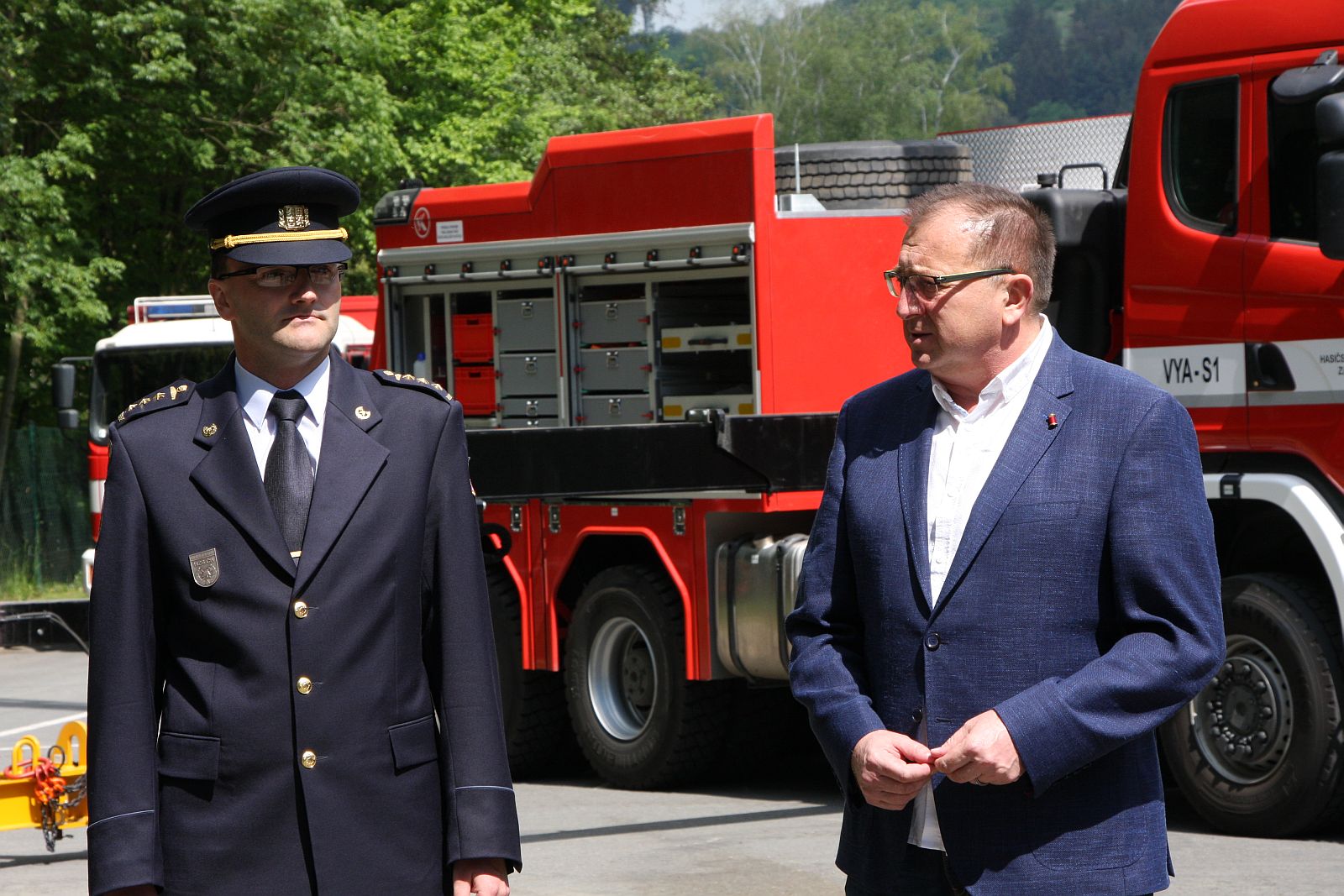 Po zahájení a úvodních projevech převzal ředitel krajských hasičů plk. Ing. Rušar klíče od nového vozidla přímo od generálního ředitele společnosti KOBIT – THZ, kterému je symbolicky „ podal“ hydraulickým jeřábem vyprošťovací automobil.
