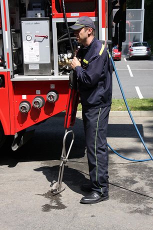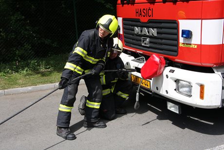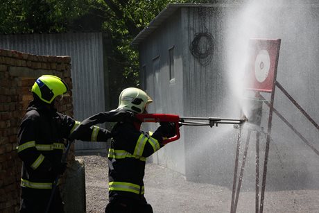 Program ještě jako bonus doplnila ukázka použití zařízení CCS COBRA pro hašení a řezání vodním paprskem, které je součástí několika zásahových vozidel krajských hasičů. Hasiči všem hostům a zástupcům tisku předvedli řezání dřeva, kovového sudu a betonové dlaždice. Závěr patřil ukázce hašení požáru v uzavřeném prostoru garáže s prořezáním vstupních vrat.