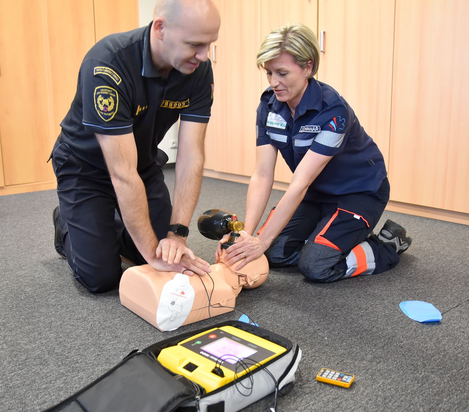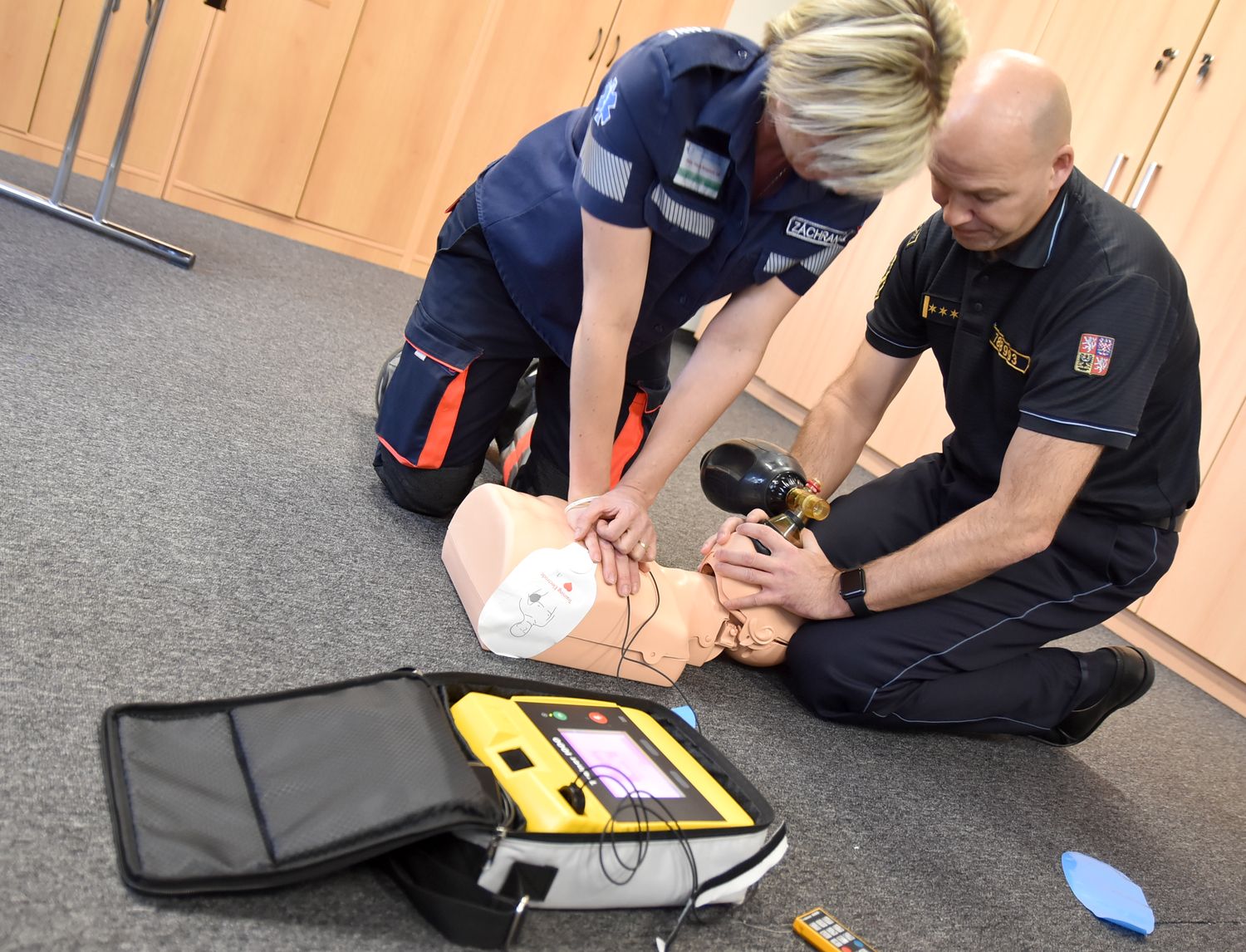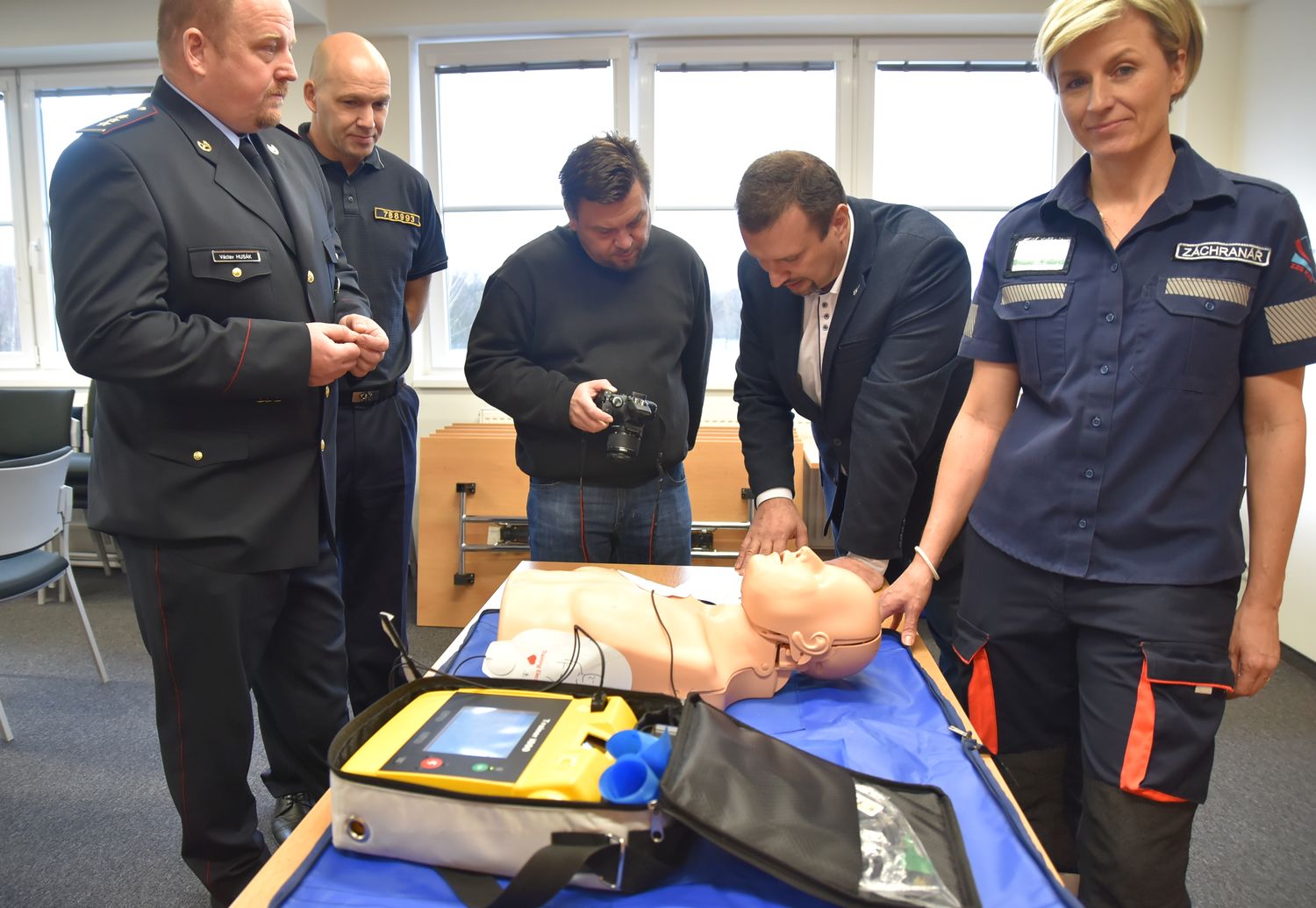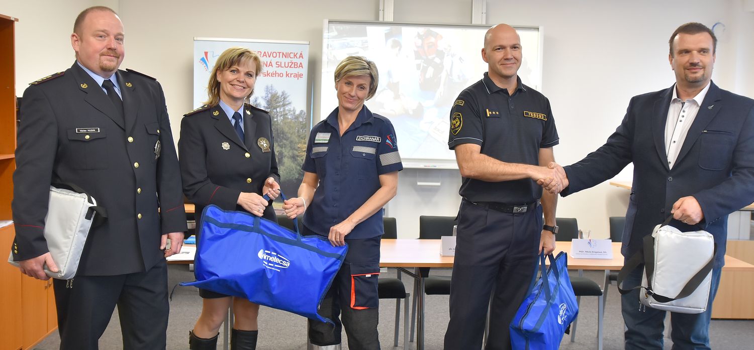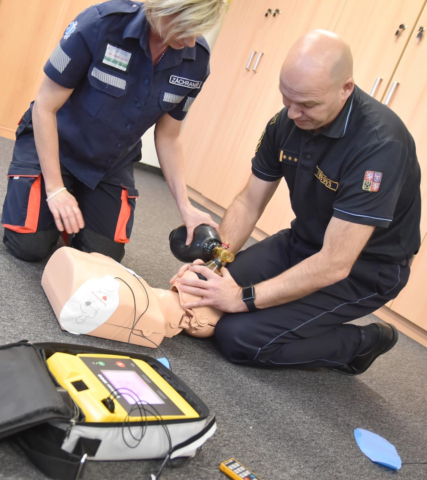 Nové pomůcky pro nácvik záchrany života při selhání základních životních funkcí převzali od záchranné služby zástupci hasičů a policie. Jedná se o cvičné přístroje AED, které dokáži automaticky poskytnout pomoc při zástavě srdce.