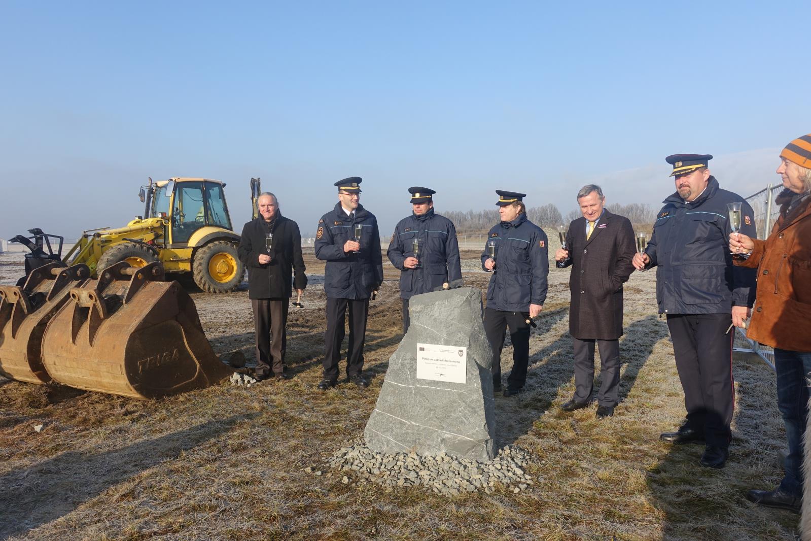 Slavnostní poklepání základního kamene nové požární stanice v Holešově
