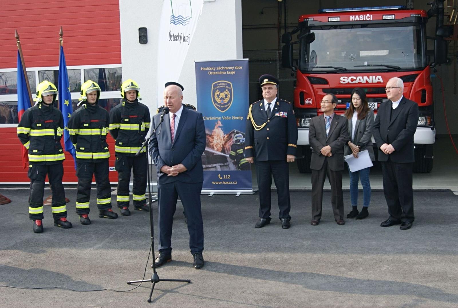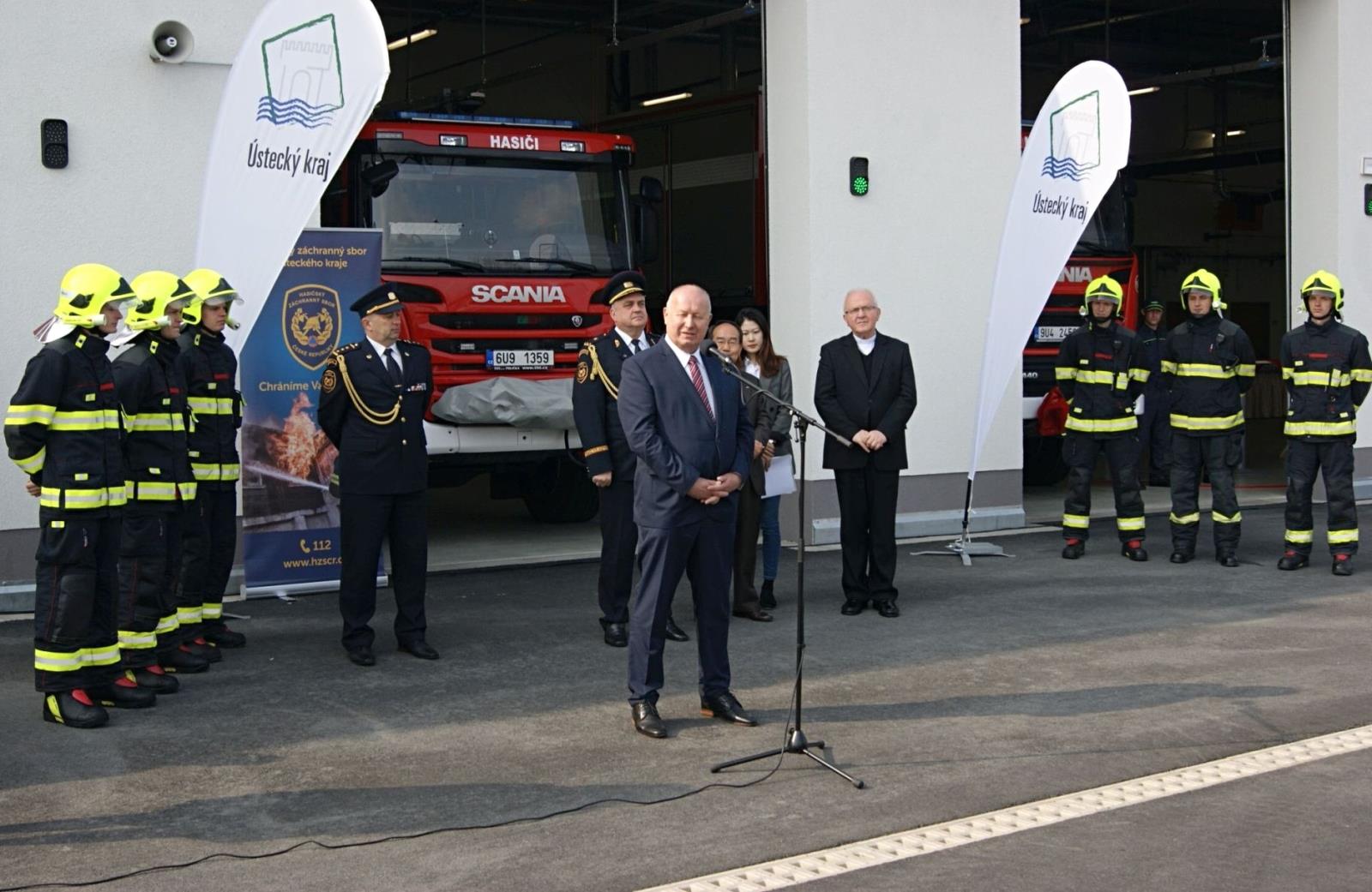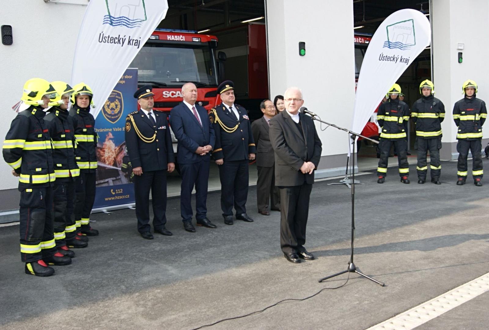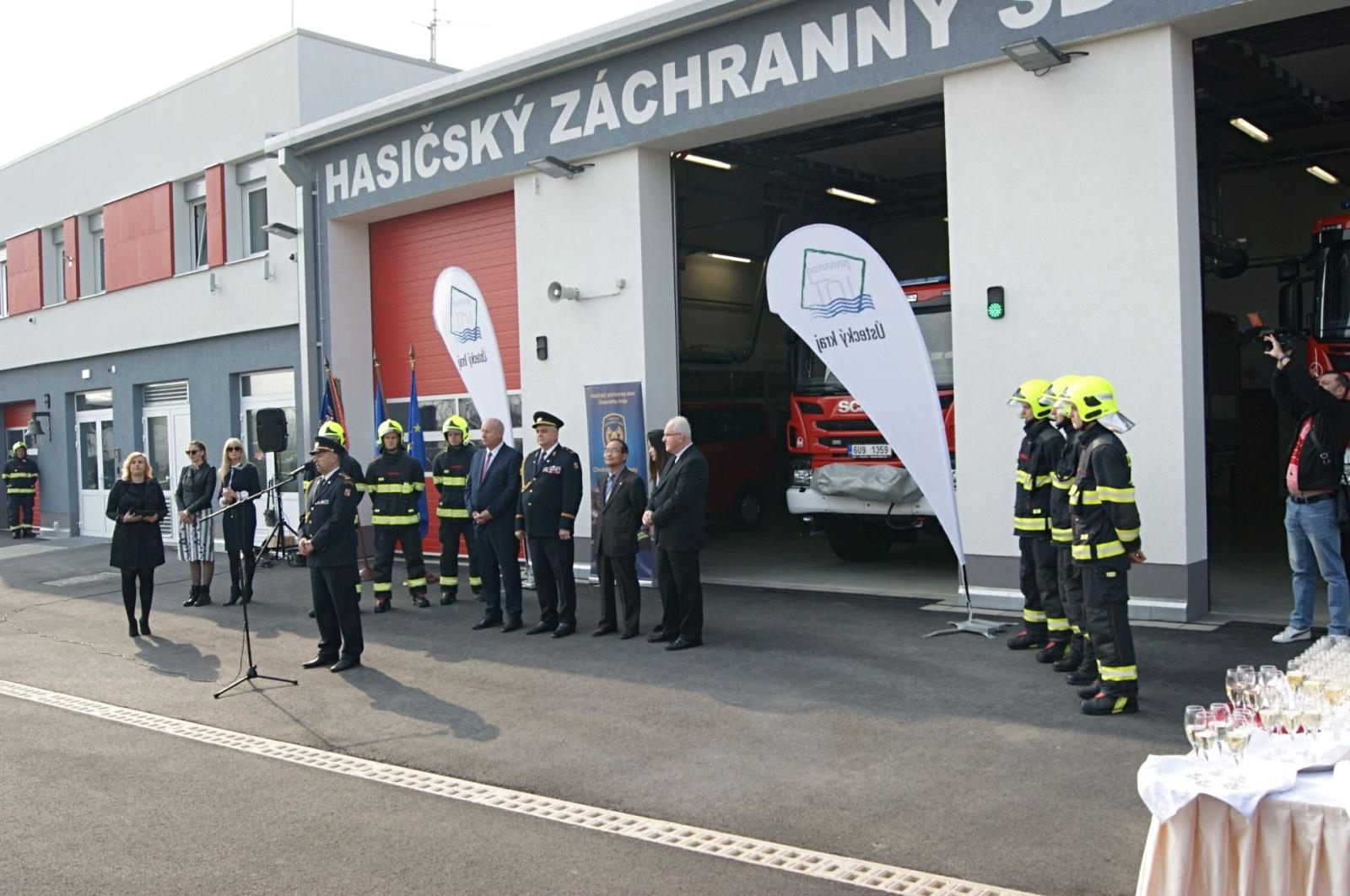 Otevření se zúčastnil hejtman Ústeckého kraje Oldřich Bubeníček, náměstek generálního ředitele pro IZS brig. gen. František Zadina, krajský ředitel Hasičského záchranného sboru Ústeckého kraje Roman Vyskočil, prezident společnosti Nexen Tire Europe Eung Young Lee, vedení HZS Ústeckého kraje, vedení HZS dalších krajů a vedení sousedních obcí. Stanici požehnal litoměřický biskup Jan Baxant. Stavba nové stanice je významnou investiční akci Ústeckého kraje v hodnotě 97 milionů korun.