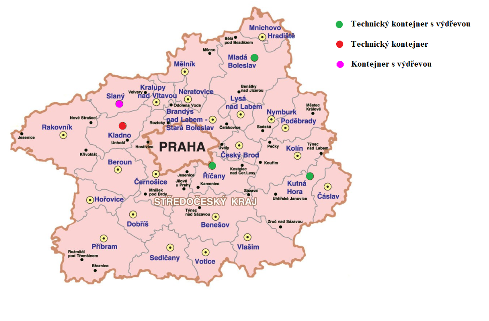 V rámci Středočeského kraje jsou technické kontejnery umístěny tak, aby byla pomoc poskytována co nejrychleji a s co nejmenší časovou prodlevou.