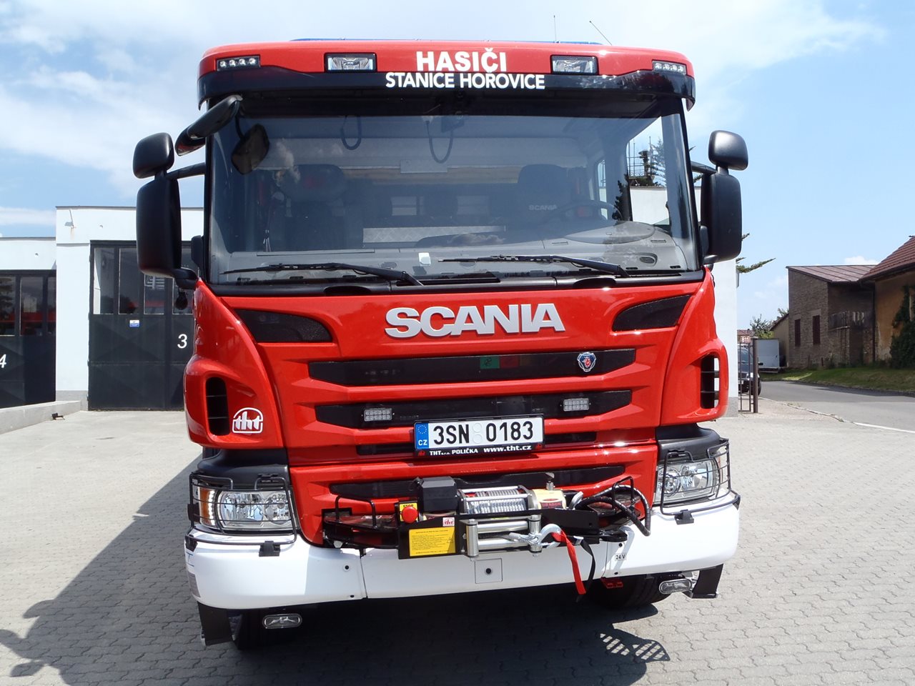 V tomto týdnu /6.8. – 10.8. 2018/ byla do výjezdu stanice HZS Hořovice územního odboru Beroun zařazena nová cisterna CAS 20/4000/240 S2T na podvozku SCANIA, která nahradí dvanáct let sloužící CAS 24 Mercedes-Benz. Nová CAS SCANIA, která byla pořízena v rámci projektu Fondu zábrany škod České kanceláře pojistitelů, je vybavena vznětovým motorem o objemu 12,7 litru s výkonem 353 kW. V kombinaci s plně automatickou sedmistupňovou převodovkou Allison dokáže automobil dosáhnout maximální rychlosti 110 km/h. Významným přínosem pro celkovou bezpečnost provozu této cisterny je i pětistupňový olejový retardér. Nástavba vozidla byla dodána firmou THT Polička. CAS je mimo jiné vybavena novým vyprošťovacím zařízením HOLMATRO a elektrickým navijákem DRAGON s nosností 5,4 tuny. V letošním roce jde už o druhý nový vůz pro hořovické hasiče. V dubnu převzali spolu s berounskými kolegy od firmy Auto Jarov dva nové dopravní automobily VW Transporter T6, které slouží pro převoz hasičů a různého materiálu. Po obměnách automobilového žebříku AZ 30 Daewoo Avia za AZ 30 Mercedes-Benz v roce 2016 a velkokapacitní cisterny CAS 32 za CAS 30 T 815-7 v loňském roce lze tedy s uspokojením konstatovat, že „hořovické technické muzeum“ je už minulostí a nová technika jistě přispěje ke zkvalitnění zásahové činnosti profesionálních hasičů celého územního odboru Beroun. mjr. Ing. Milan Provazník - pracoviště IZS a služeb územní odbor Beroun Zdroj: por. Ing. Ladislav Holomčík, tiskový odbor HZS Středočeského kraje Foto:HZS Středočeského kraje FOTOGALERIE
