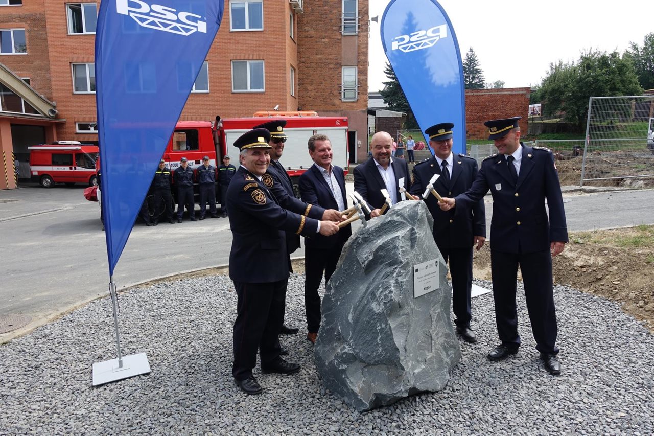 18.6.2018 v jedenáct hodin dopoledne byl položen základní kámen nové budovy centrální požární stanice ve Zlíně. Slavnostního aktu se zúčastnilo i několik významných hostů. Jedním z nich byl i genmjr. Ing. Drahoslav Ryba, generální ředitel HZS ČR, který spolu s brig. gen. Mgr. Bc. Slavomírem Bellou MSc., primátorem MUDr. Miroslavem Adámkem, výkonným ředitelem PSG Construction a.s. Ing. Jaroslavem Ševelou, ředitelem krajského ředitelství HZS ZLK plk. Ing. Vítem Rušarem a velitelem centrální stanice Zlín mjr. Ing. Janem Klepáčem poklepal základní kámen nové hasičské stanice, která se začala stavět na ulici Přílucká ve Zlíně. Projekt s názvem „ZVÝŠENÍ ODOLNOSTI STANICE ZLÍN HASIČSKÉHO ZÁCHRANNÉHO SBORU ZLÍNSKÉHO KRAJE S DŮRAZEM NA PŘIZPŮSOBENÍ SE ZMĚNÁM KLIMATU A NOVÝM RIZIKŮM“ zahrnuje stavbu nové čtyřpodlažní budovy včetně podzemního podlaží pro garáže a rekonstrukci stávající budovy krajského ředitelství ve Zlíně. V loňském roce na něj byla získána dotace z programu EU IROP ve výši 133 miliónů korun. Předpokládaná výše nákladů na celou realizaci stavby se vyšplhala na 148 miliónů korun. Nová stanice vyroste za stávající budovou ve Zlíně v místní části Příluky. Budova poskytne především výjezdovým hasičům, kteří jezdí na místa mimořádných událostí, moderní zázemí, včetně jídelny, posilovny, odpočívací místnosti, velké garáže pro parkování prvovýjezdových vozidel i dalších místností pro skladování techniky. Taktéž zde bude vyhrazena místnost pro jednání krizového štábu. Veškeré práce se budou po dobu dvou let provádět za plného provozu, proto musí být vše zkoordinované tak, aby nebyl ohrožen a omezen chod stávající stanice. Důvodem stavby nové budovy je kapacitně a technologicky nevyhovující stávající budova, kde se nyní nachází krajské ředitelství a zároveň i stanice zlínských profesionálních hasičů. Nová budova se stavebně propojí se stávajícím objektem, který následně bude zrekonstruován a uvolněné prostory budou přestavěny na kanceláře, sklady a zázemí pro zaměstnance krajského ředitelství. Tato následná rekonstrukce bude hrazena ze státního rozpočtu a je odhadnuta na 15 miliónů korun. Zdroj : por. Mgr. Lucie Javoříková, tisková mluvčí HZS Zlínského kraje Foto: HZS Zlínského kraje FOTOGALERIE