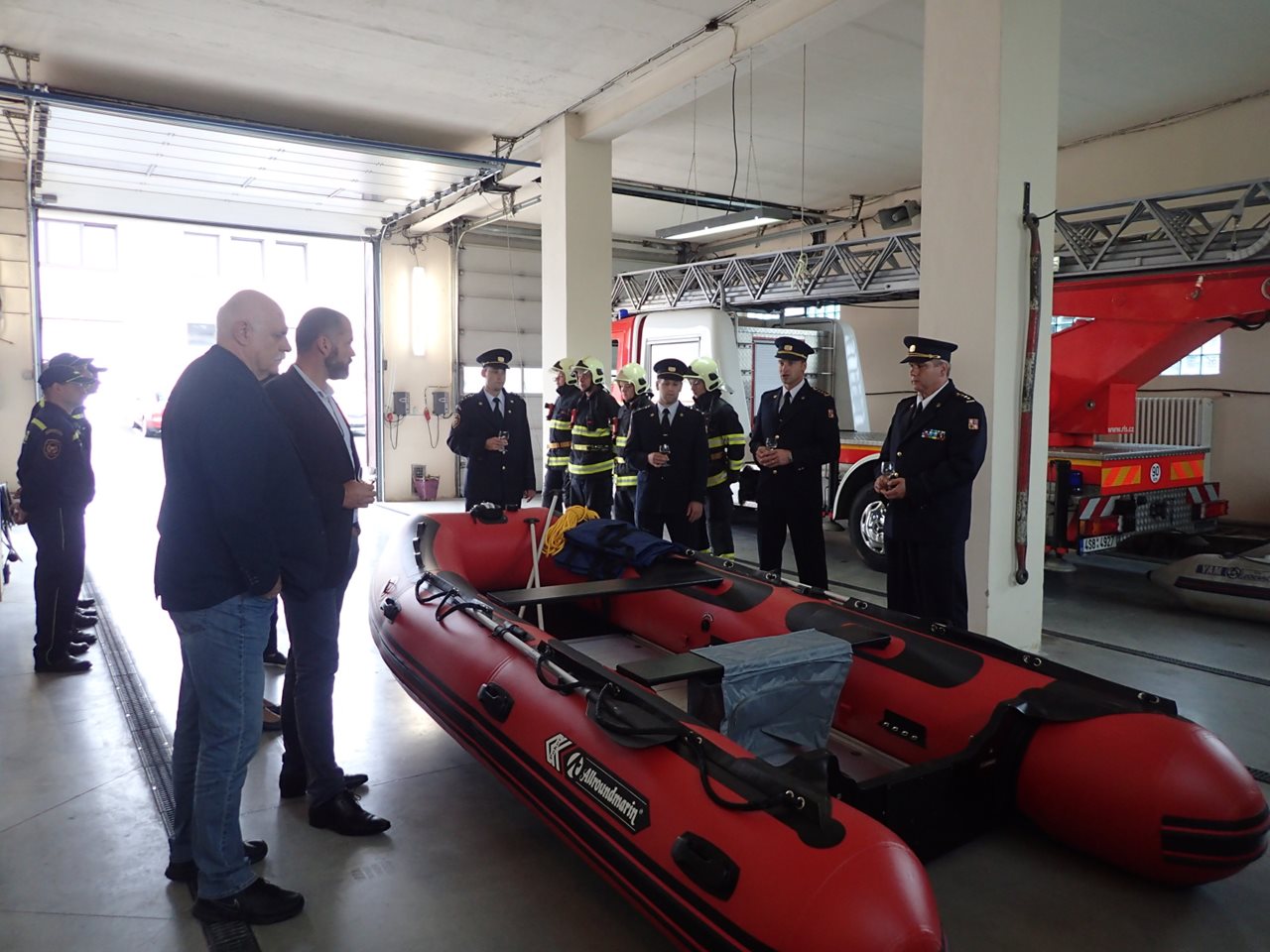 V pátek 1. září proběhlo na hasičské stanici v Dobříši slavnostní předání nového nafukovacího člunu. Zbrusu nový záchranářský prostředek byl jednotce předán za účasti vedoucího oddělení služeb Hasičského záchranného sboru Středočeského kraje plk. Ing. Petra Chalupníka a ředitele příbramského územního odboru plk. Ing. Tomáše Horváta, Ph.D. Slavnosti se také zúčastnili starosta města Dobříše Mgr. Stanislav Vacek, MPA, a radní Ing. Markéta Čermáková, MBA, a Radek Vystyd, MPA. Gumový člun s hliníkovou podlahou a nafukovacím V-kýlem je navržen pro profesionální využití, ať už pro hasiče, vodní záchranáře nebo potápěče. Konstrukce plavidla nabízí hasičům pevný, odolný a stabilní člun s výbornými jízdními vlastnostmi. Člun má nosnost 1 000 kg a včetně povinného vybavení uveze až sedm osob. Vnitřní prostor je dostatečně velký jak pro posádku, tak pro převážený materiál, k jehož upevnění je k dispozici spousta uchycovacích prvků. Záchranářský člun je určen zejména pro vyhledávání a záchranu osob z vody, pro přepravu a evakuaci lidí, zvířat i majetku a pro likvidaci úniků nebezpečných látek do vody. Celková pořizovací cena člunu byla 67 000 Kč, přičemž 90 procent nákladů uhradilo město Dobříš příspěvkem ve výši 60 000 Kč. npor. Ing. Radek Dopirák velitel stanice Dobříš Zdroj: Tiskový odbor :HZS Středočeského kraje Foto:HZS Středočeského kraje