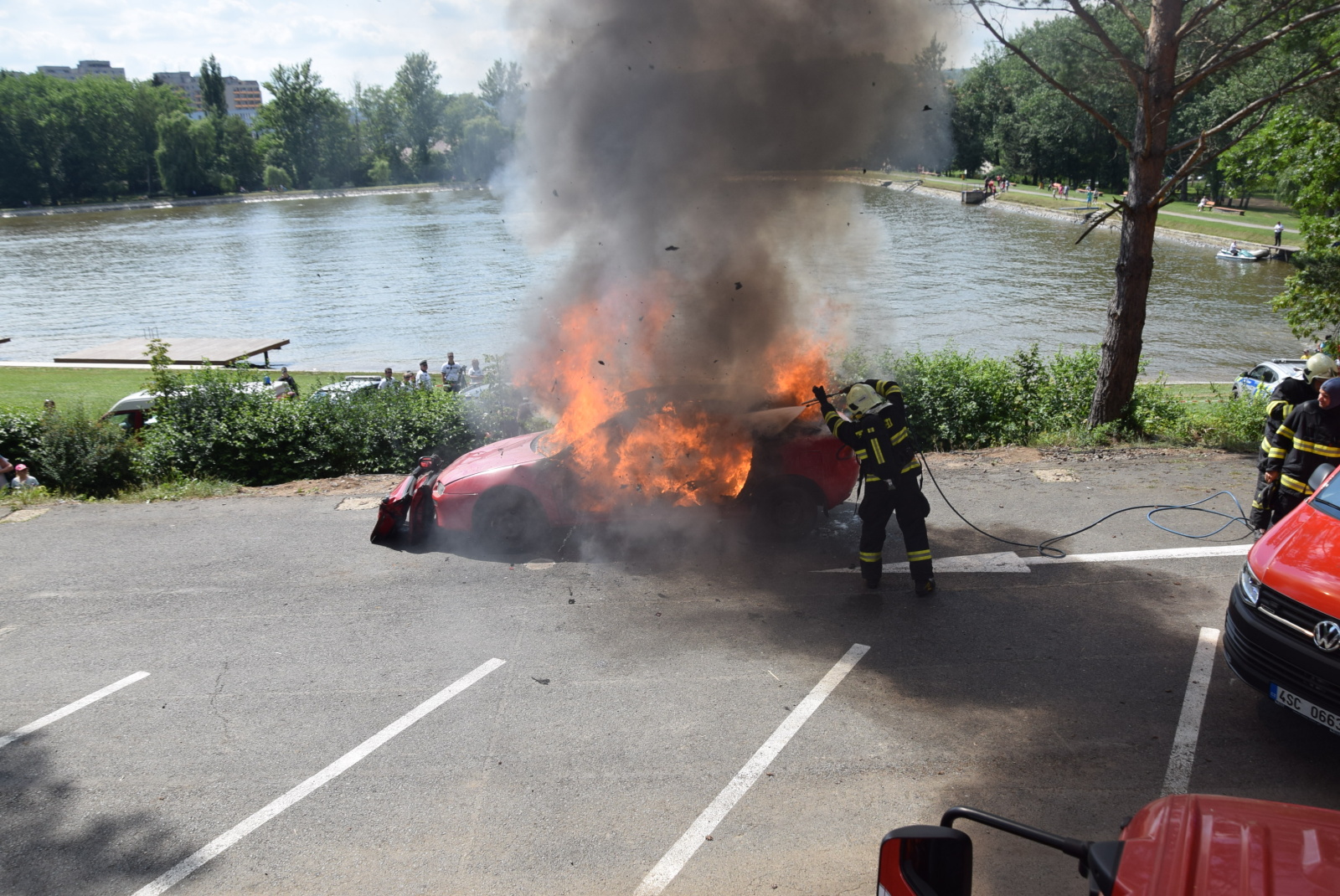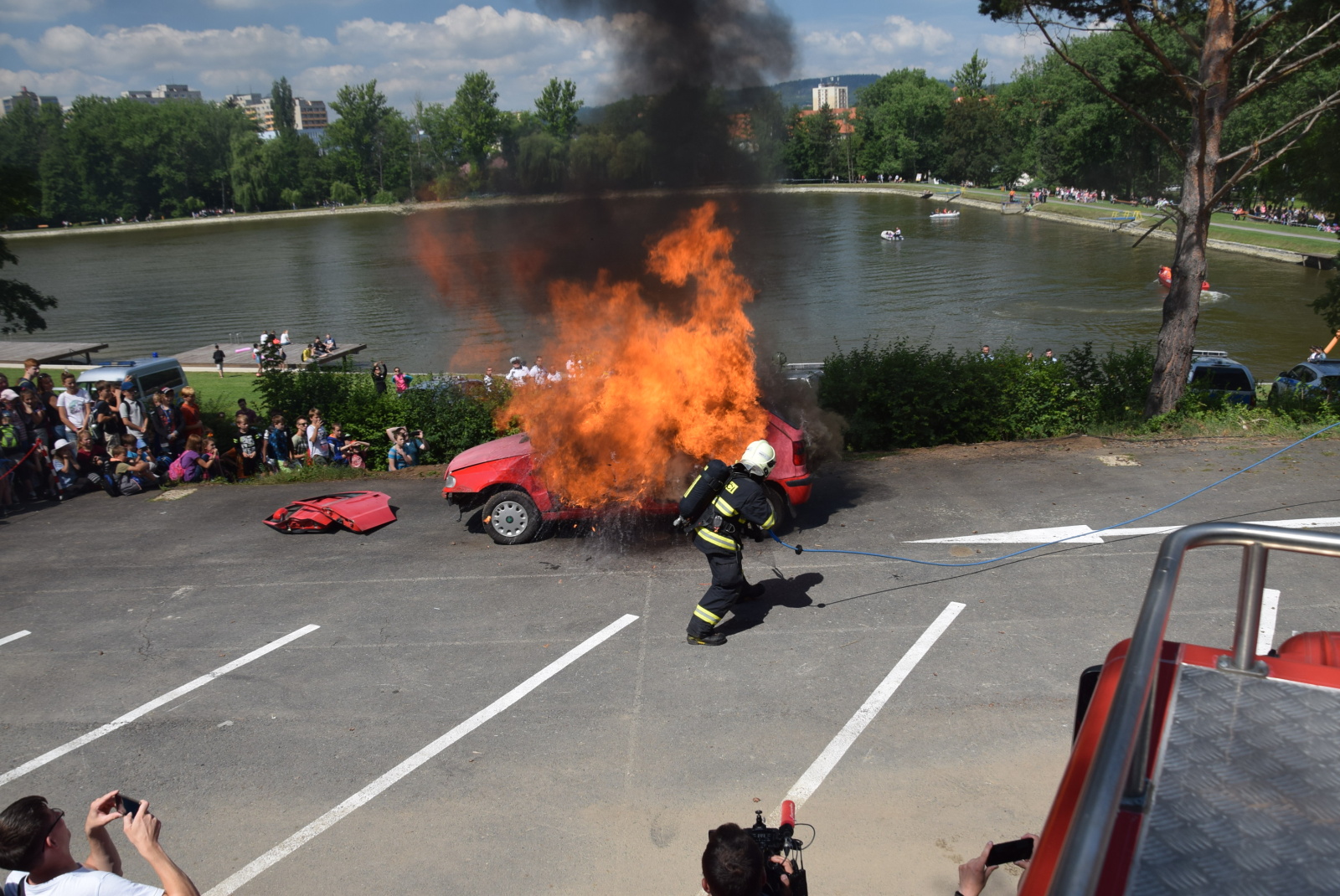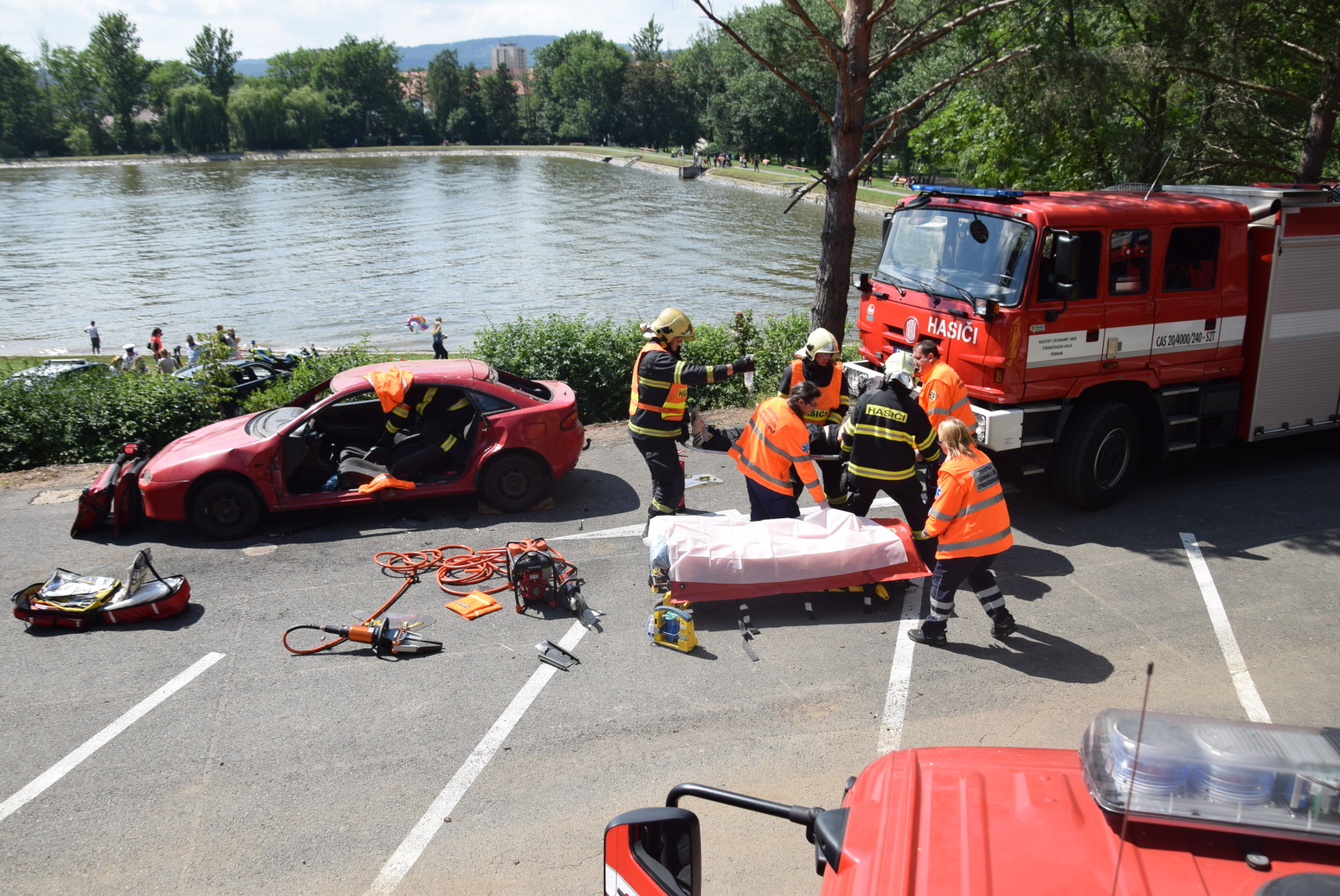 K vidění nebyly jen statické ukázky, ale i praktické předvedení běžné práce hasičů – vyprošťování osob z havarovaného vozidla, hašení osobního automobilu nebo činnost lezecké skupiny.