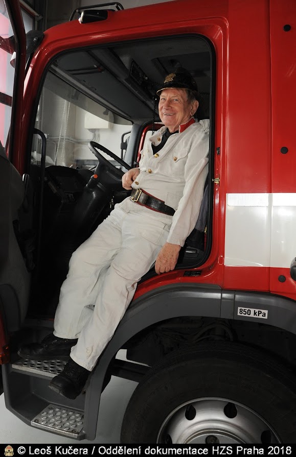 FOTOGALERIE Josef Dvořák jako “hasič z kultovních Návštěvníků” předal hasičům super vozík z budoucnosti