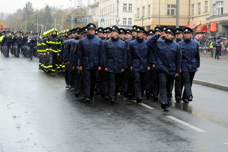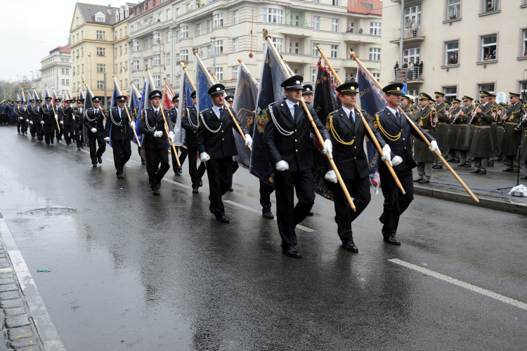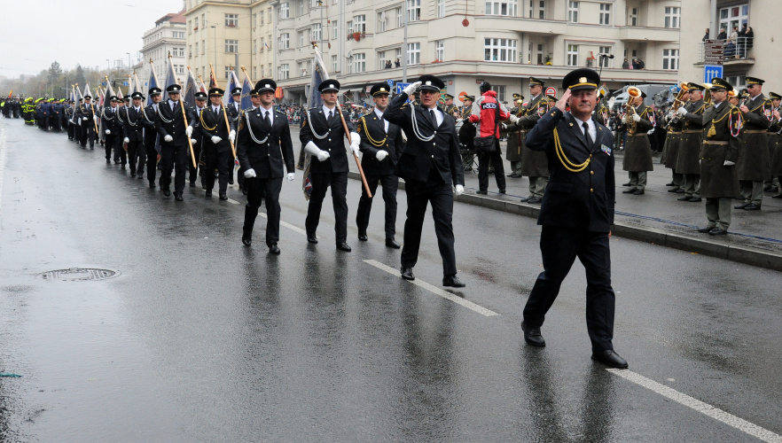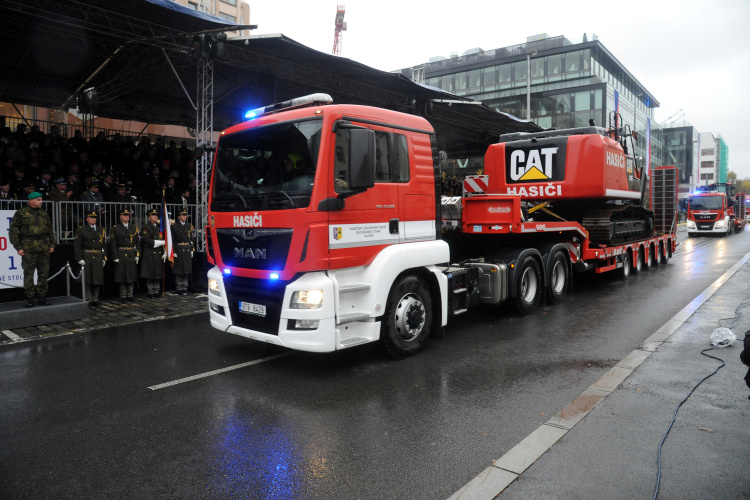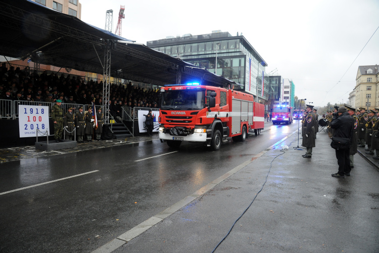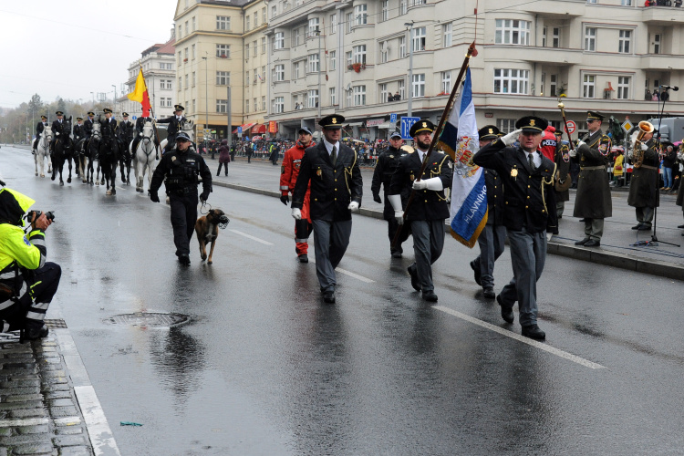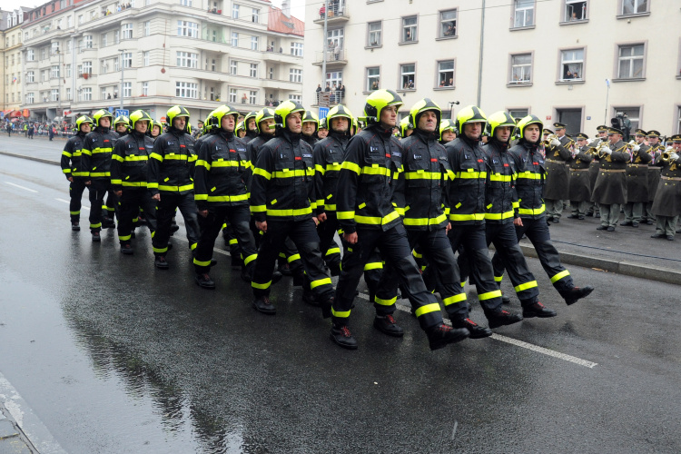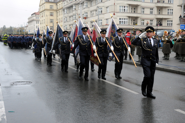 V průvodu na Evropské třídě pochodovalo v neděli 28.října 2018 120 hasičů a představilo se 27 kusů hasičské techniky.