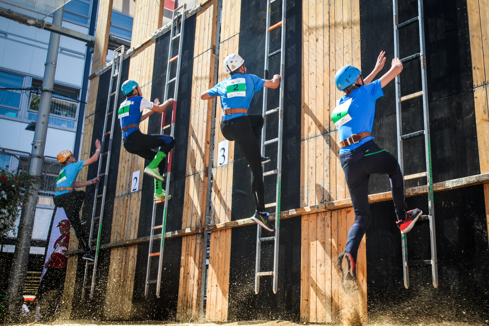 První soutěžní den zahájí závodníci výstupem na cvičnou věž. Po této disciplíně bude následovat slavnostní ceremoniál k zahájení celého mistrovství. Vše se uskuteční před Průmyslovým palácem na Výstavišti v Praze Holešovicích. Zde bude také připraven doprovodný program pro účastníky i návštěvníky mistrovství – výstava fotografií z historie HZS hl. m. Prahy a z požáru Průmyslového paláce 2008, ukázka vyprošťování zraněných osob z havarovaných vozidel, výstava hasičské techniky HZS hl. města Prahy, stan prevence HZS hl. m. Prahy nebo skákací hrad pro děti.