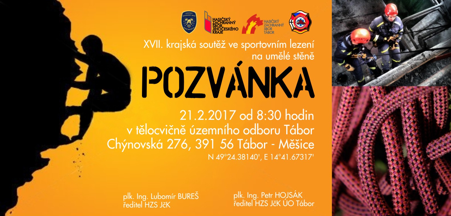 Kdo je ale z jihočeských hasičů-lezců ten nejlepší, zjistíme na krajské soutěži HZS Jihočeského kraje v úterý 21. února 2017 od 9 hodin v tělocvičně územního odboru Tábor v Chýnovské ulici v Táboře. Podmínky budou samozřejmě zcela odlišné od reálných zásahů - hasiči budou soutěžit na umělé stěně podle pravidel sportovního lezení.