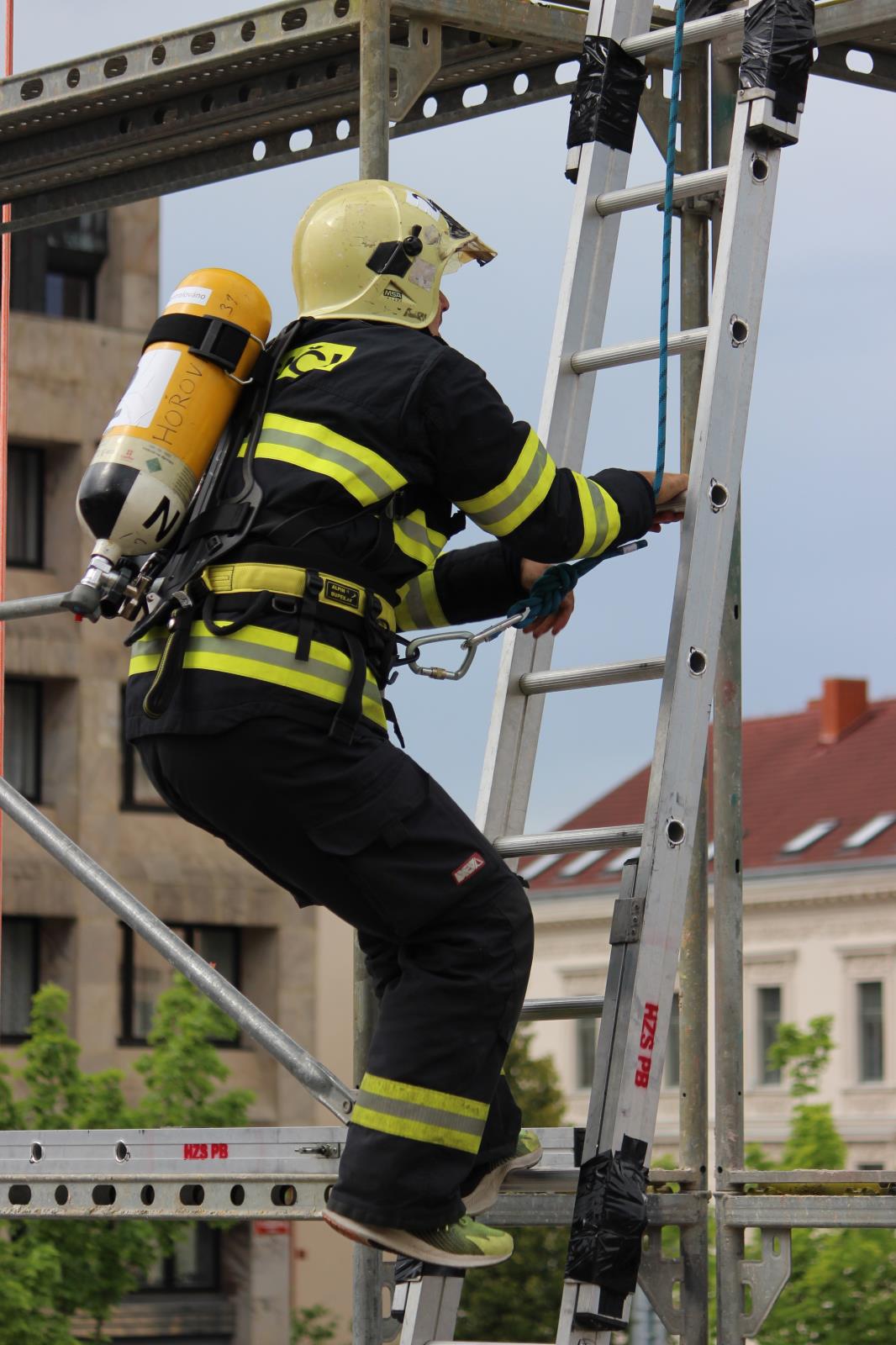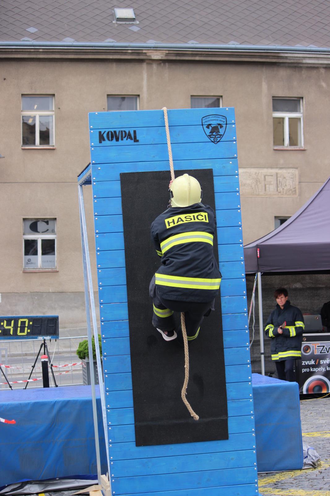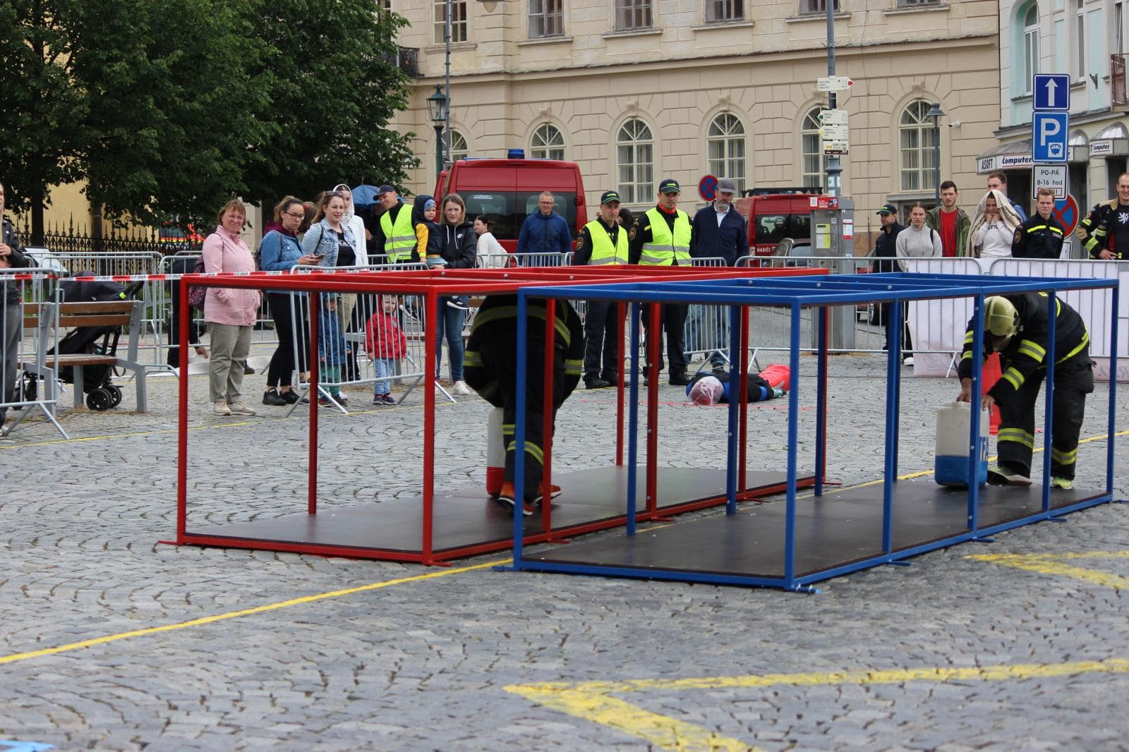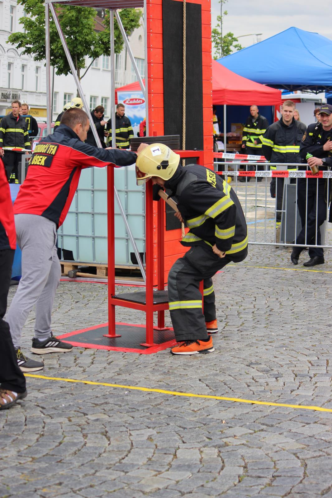 Tři části proběhnou přímo na náměstí T. G. Masaryka. Hasiči tam rozvinou a smotají hadice, zvládnou hammer box s osmdesáti údery těžkou palicí, přenesou závaží tunelem, vyprostí figurínu a překonají bariéru. Další disciplínou je výstup na lešení spojený s vytažením zátěže do vyššího podlaží.