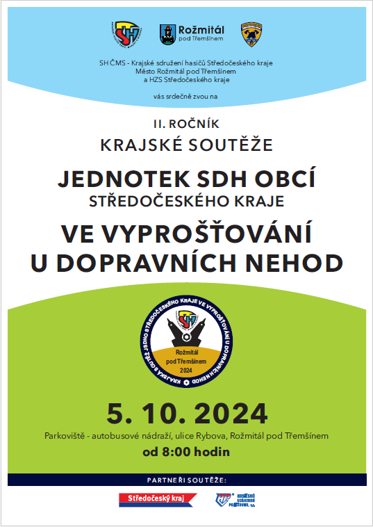 V sobotu 5. října se v Rožmitálu pod Třemšínem na Příbramsku uskuteční druhý ročník Krajské soutěže jednotek SDH obcí ve vyprošťování u dopravních nehod.