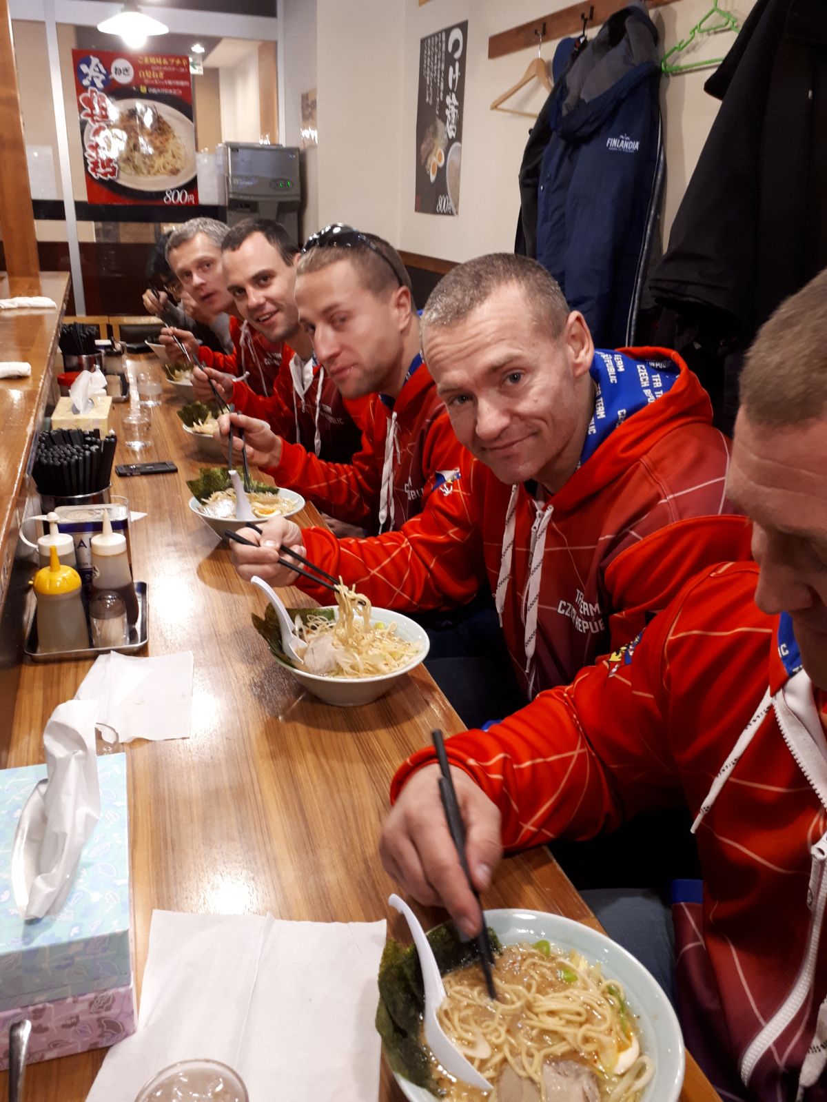 „Jsme rozlámáni z cesty letadlem a z časového posunu. Někteří z týmu naspali za 36 hodin jen 3 hodiny spánku. Jídlo je velmi zajímavé. Máme zde na výběr od jater, přes chobotnice až po syrové koňské maso. Co se města týče, tak Tokio – to je zejména moderní architektura, spousta betonu, velké průmyslové zóny na okrajím města a neustále přeplněné metro. Naopak například pořady v televizi jsou pro našince nadmíru pestré, se spoustou barevných kostýmů, které mohou na Evropana působit až kýčovitě.