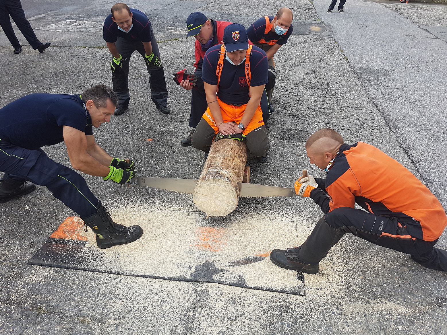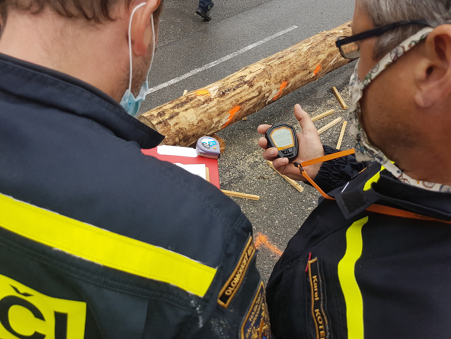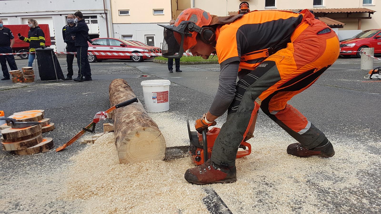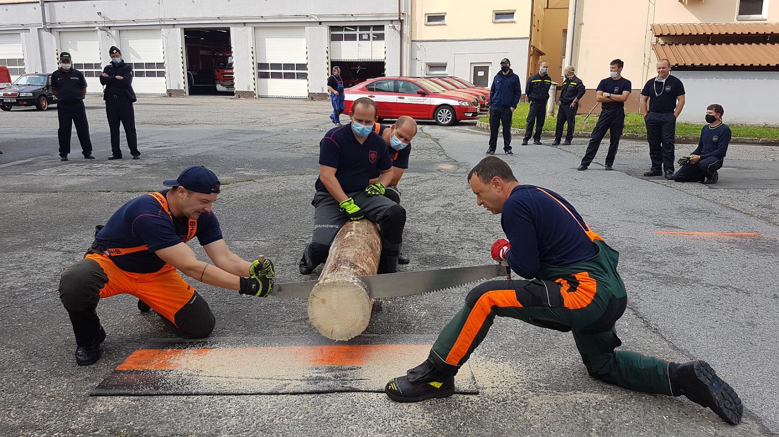 Čekání na vyhodnocení zpestřila ještě soutěž dvoučlenných družstev s pilou kaprovkou v řezání dřeva na čas, v níž si nejlépe vedl tým složený z Marka Záhorského ze stanice Jeseník a Pavla Zatloukala ze stanice Prostějov.