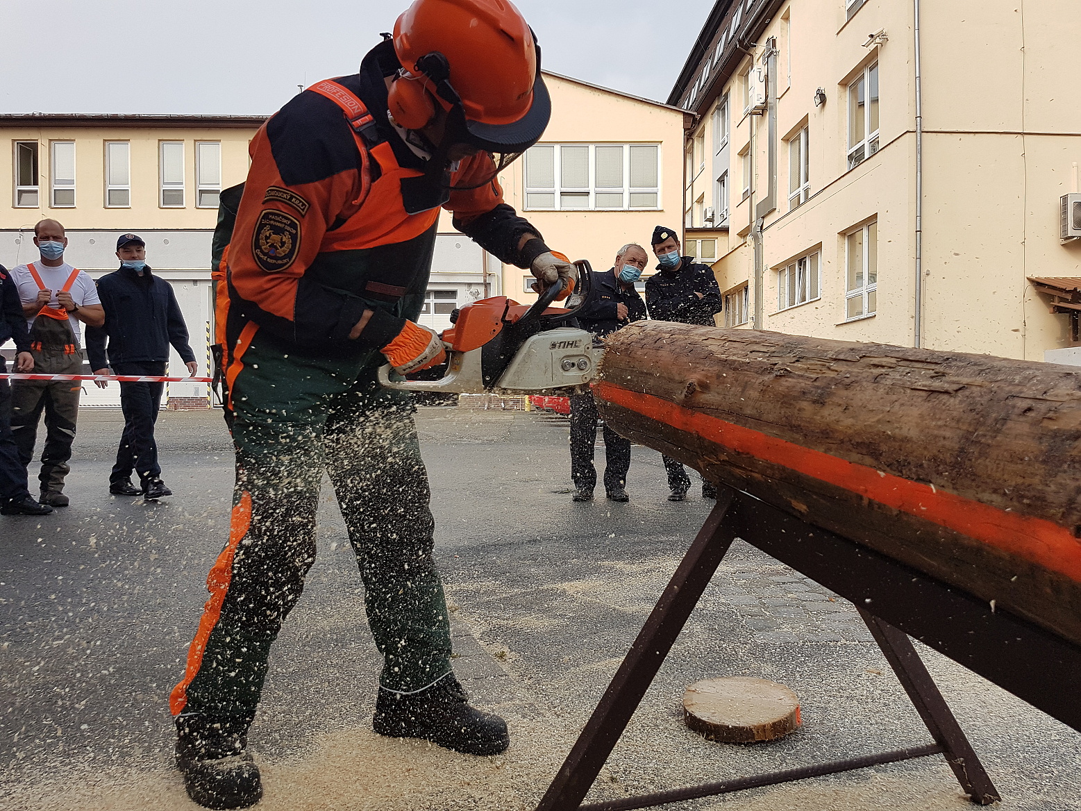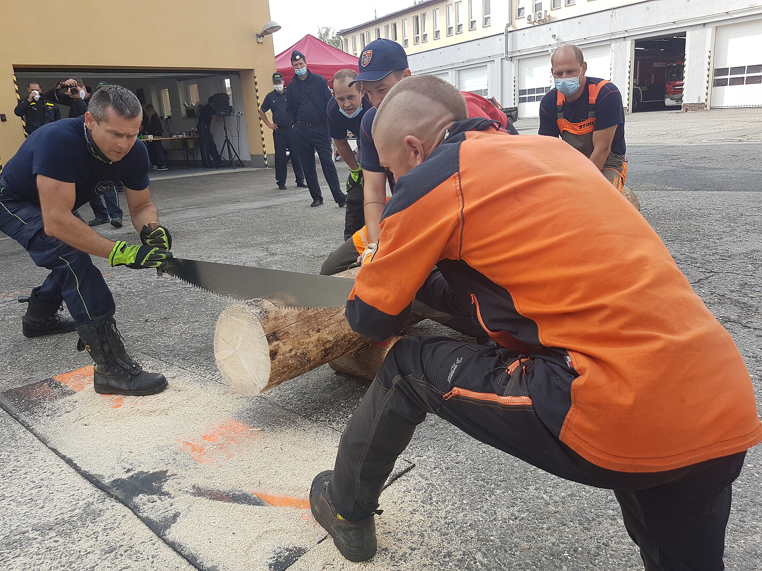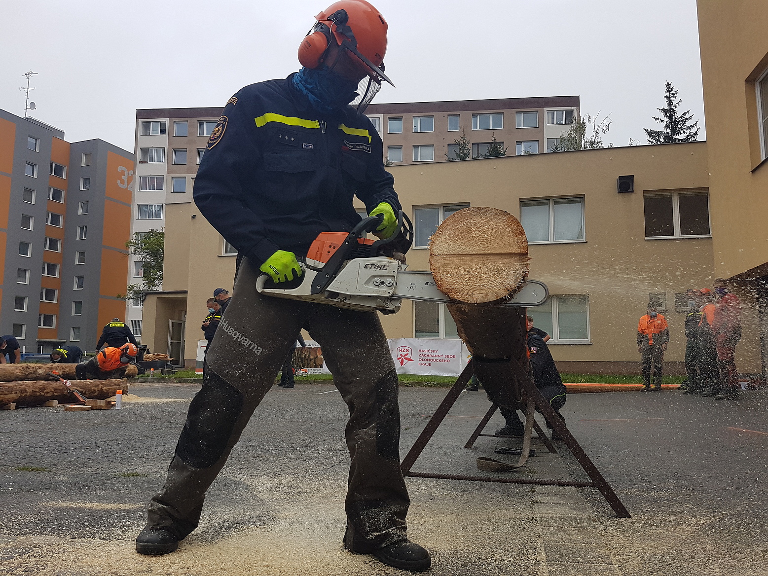Čekání na vyhodnocení zpestřila ještě soutěž dvoučlenných družstev s pilou kaprovkou v řezání dřeva na čas, v níž si nejlépe vedl tým složený z Marka Záhorského ze stanice Jeseník a Pavla Zatloukala ze stanice Prostějov.