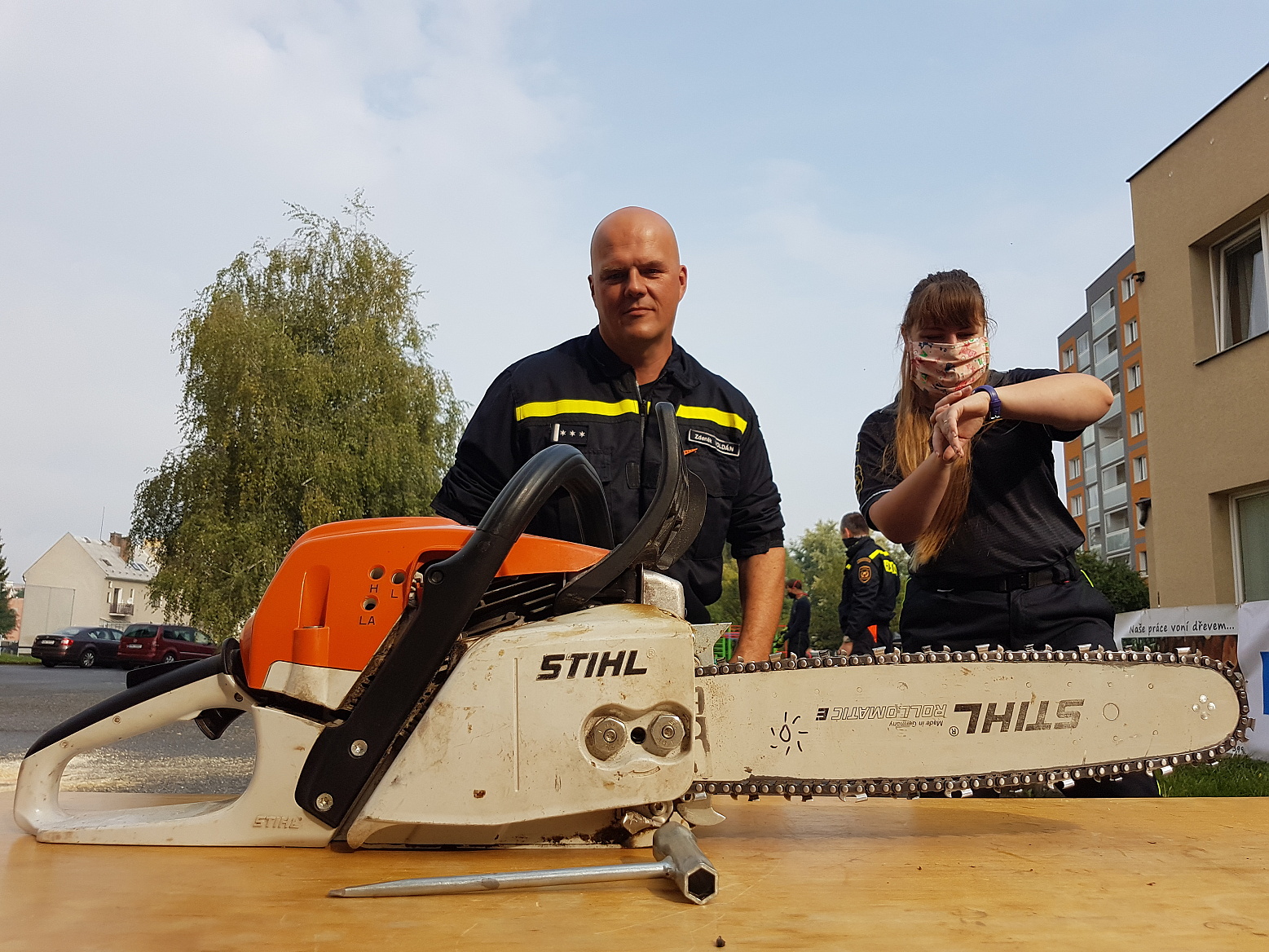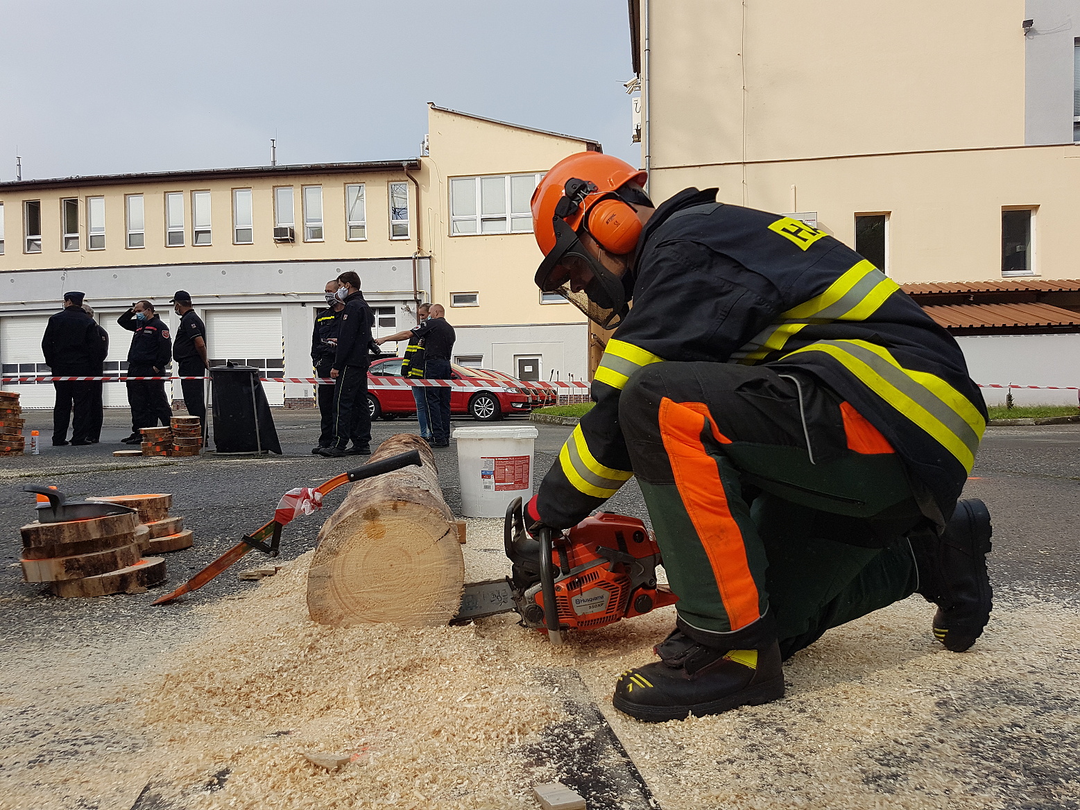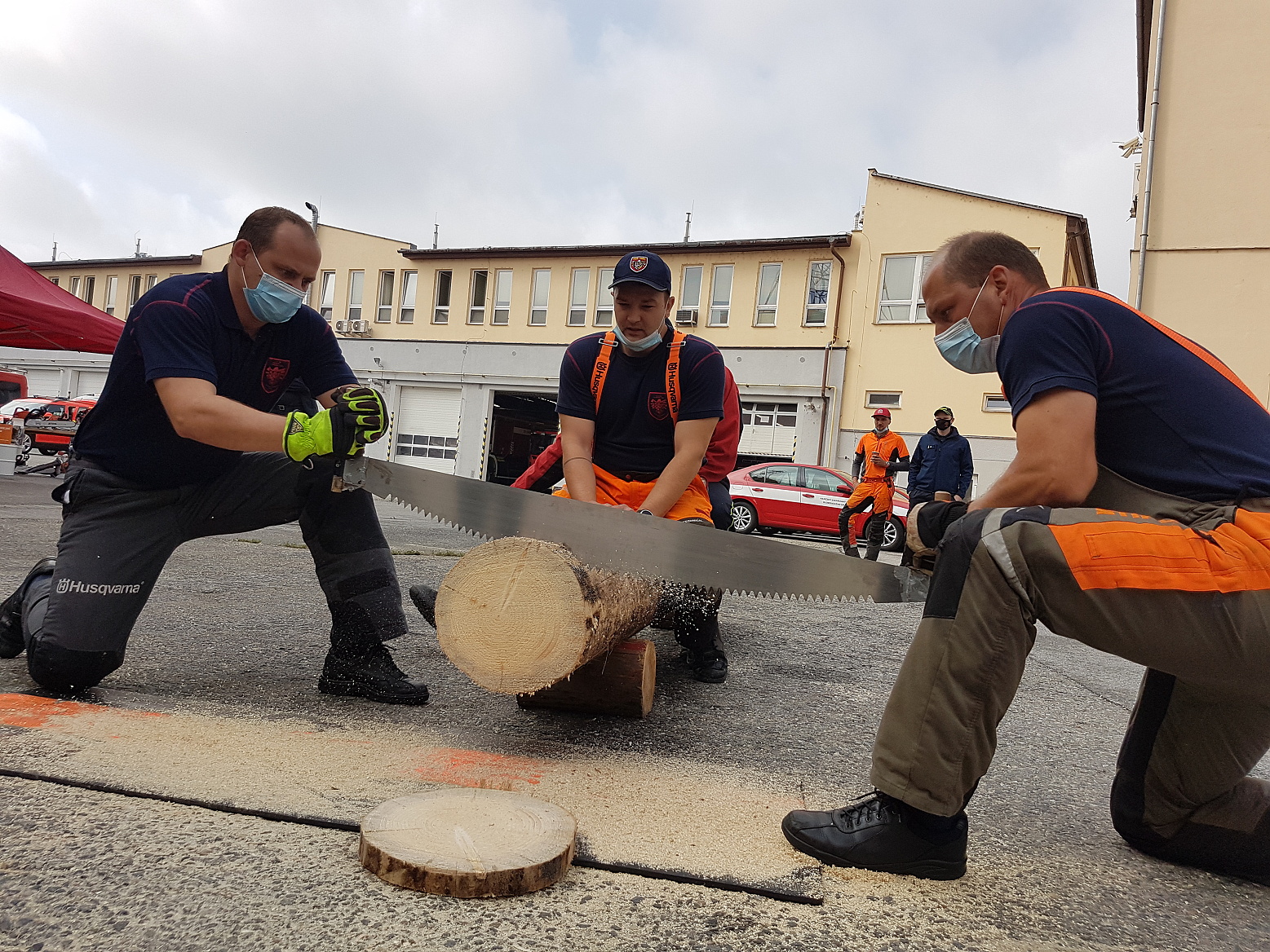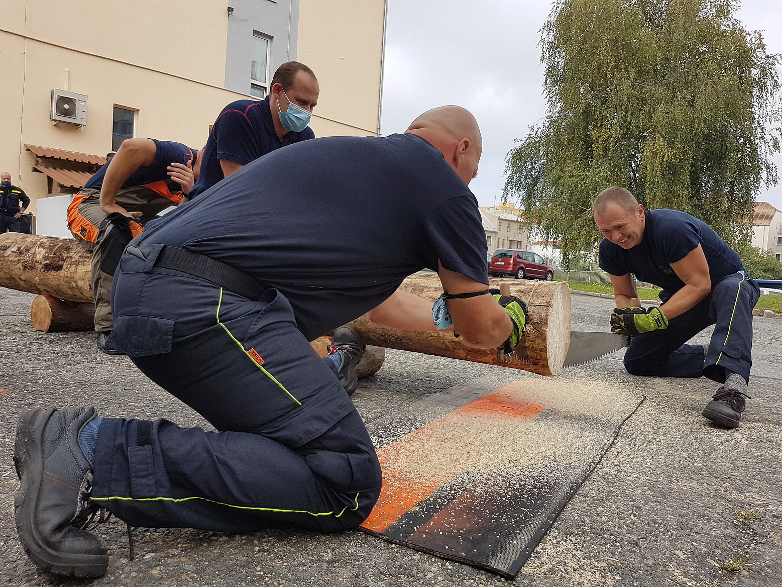 Čekání na vyhodnocení zpestřila ještě soutěž dvoučlenných družstev s pilou kaprovkou v řezání dřeva na čas, v níž si nejlépe vedl tým složený z Marka Záhorského ze stanice Jeseník a Pavla Zatloukala ze stanice Prostějov.