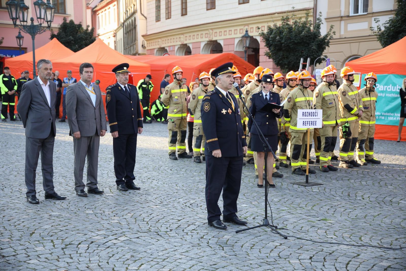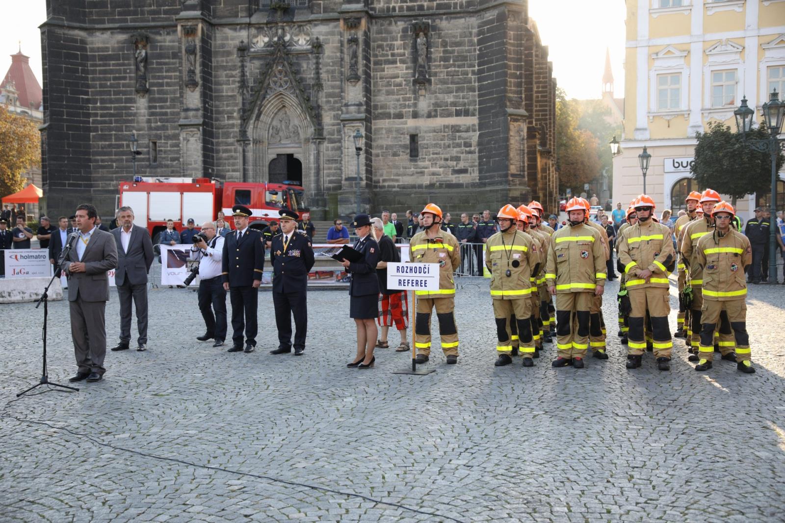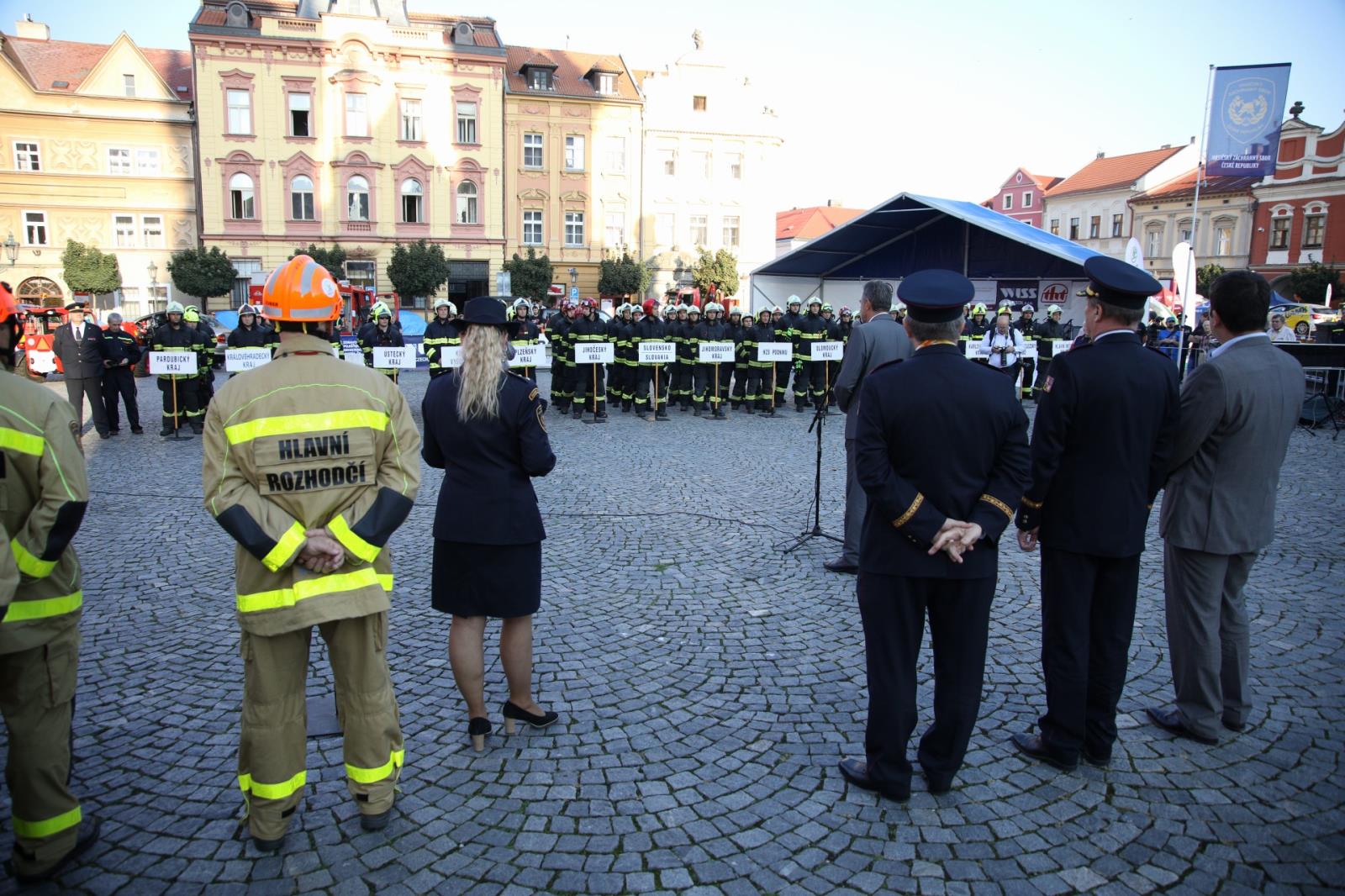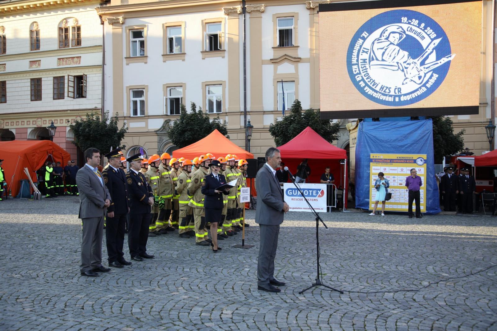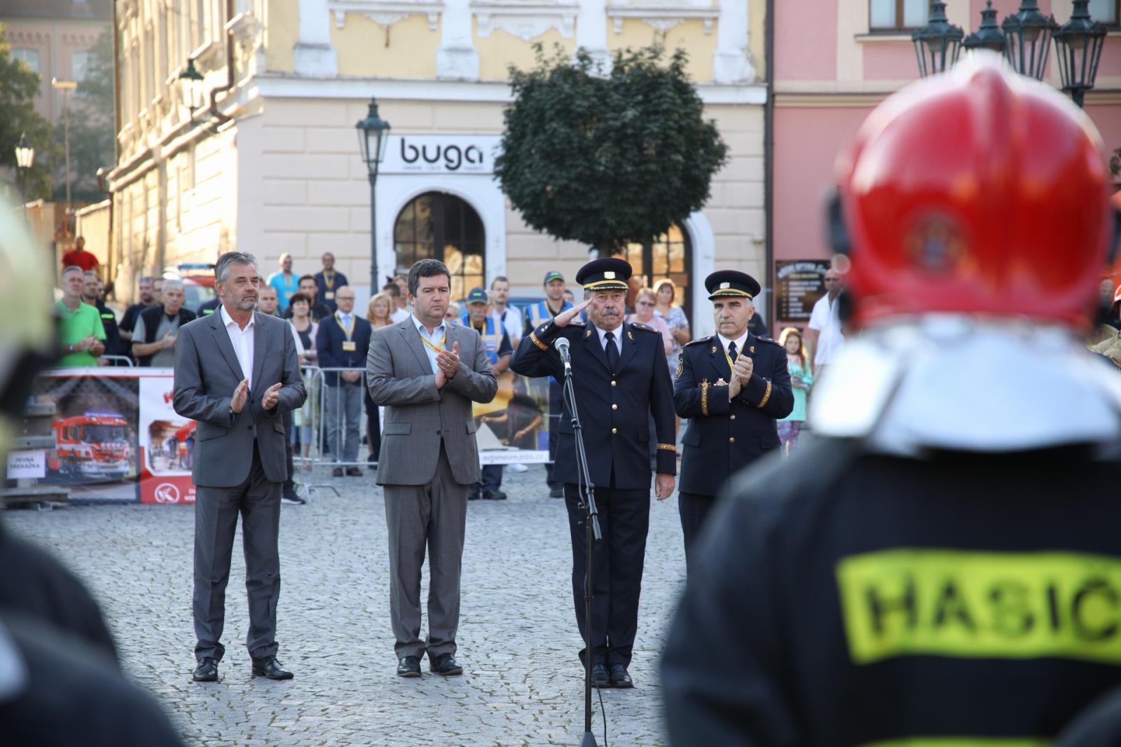 Přivítat na 80 závodníků z celé České republiky přijel ministr vnitra Jan Hamáček, genmjr. Ing. Drahoslav Ryba, generální ředitel HZS ČR, brig. gen. Ing. Miroslav Kvasnička, ředitel HZS Pardubického kraje i starosta města Chrudimě Mgr. Petr Řezníček.