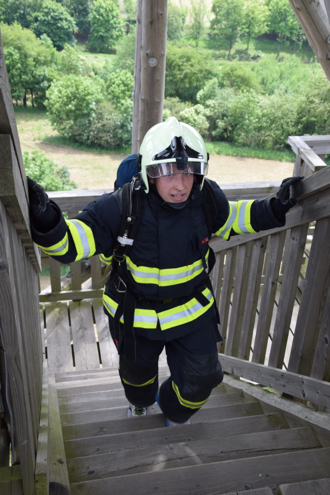 Všichni účastníci museli nejdříve zvládnout sedm vyčerpávajících disciplín – roztažení a balení hadic, překonání dvoumetrové bariéry, šedesát střídavých úderů palicí do hammer boxu, transport figuríny vážící 80 kilogramů, přenesení dvou kanystrů naplněných vodou a vytažení břemene lanem do prvního patra rozhledny. Pak je ovšem čekal úkol nejtěžší, a to výstup po celkově 216 schodech do nejvyššího patra na vyhlídkový ochoz rozhledny Bohdanka. To vše v zásahovém obleku s helmou a s dýchacím přístrojem na zádech jako zátěží. O fyzické náročnosti soutěže svědčí fakt, že na vrcholu byla tradičně připravena posádka středočeské záchranky s kyslíkem a defibrilátorem.