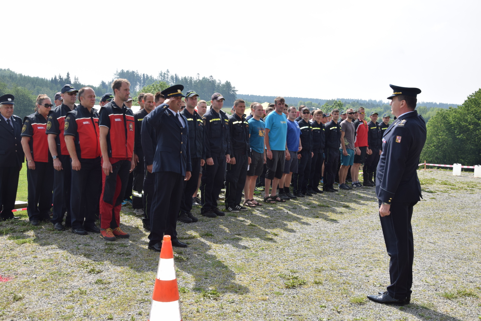Slavnostního nástupu závodníků, rozhodčích i organizátorů se za vedení HZS Středočeského kraje zúčastnil náměstek ředitele pro integrovaný záchranný systém a operační řízení plk. Ing. Miloš Hladík, který všechny přítomné pozdravil spolu se starostou obce Bohdaneč Milanem Dlouhým.