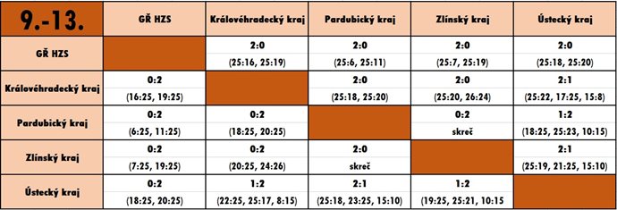 Zápasy ve finálové skupině byly ukázkou parádního moderního volejbalu, ve kterém nechyběly tvrdé smeče, nepropustné bloky, nechytatelná podání ani technické finesy. V utkání o třetí místo zvítězili hráči HZS Plzeňského kraje nad loňskými přeborníky z jihu Čech až po rozhodujícím tie-breaku. Finále pak přineslo vyrovnaný souboj několikanásobných vítězů z Moravskoslezského kraje, kteří nakonec podlehli ve dvou sadách skvěle připravenému a sehranému družstvu hasičů z Prahy.