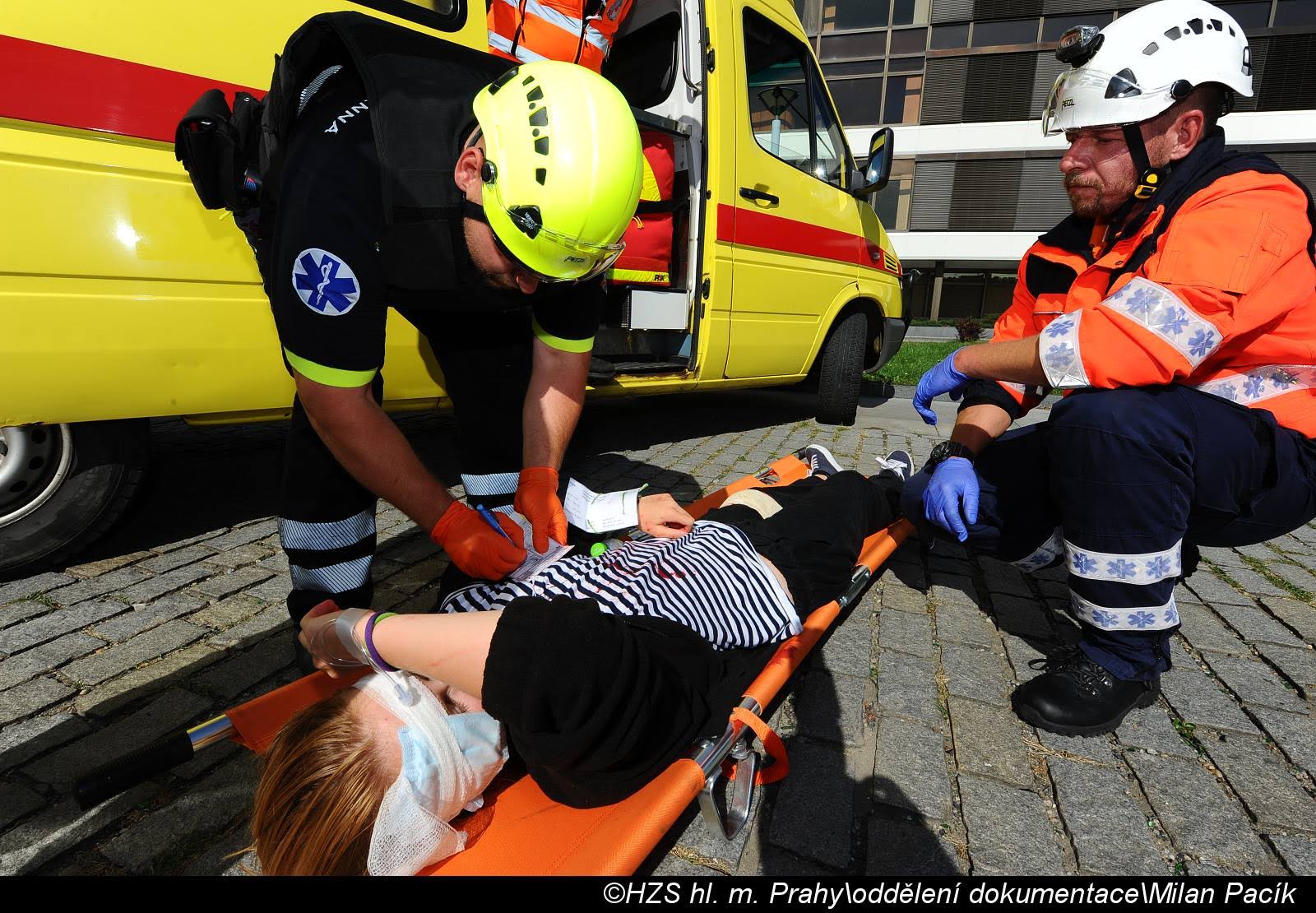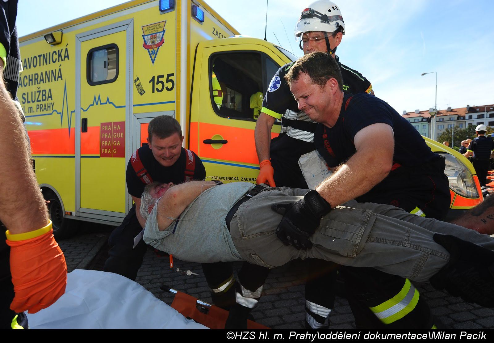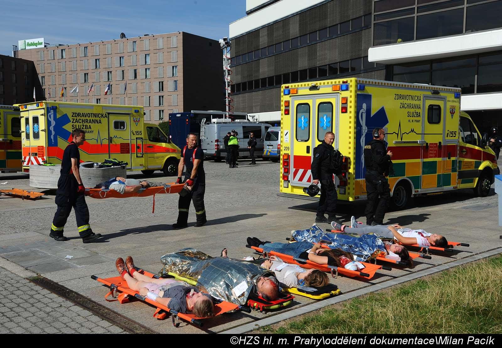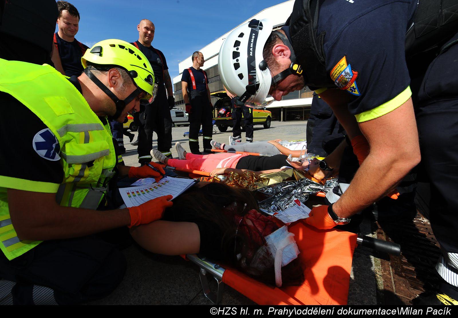 Pražští hasiči měli na místě šest jednotek hasičů. Ti asistovali ZZS při třídění a transportu pacientů do sanitních vozů. Následně hasiči prováděli transport těl obětí útoku do speciálního mobilního kontejneru pro uchování těl, tzv. mobilní márnice.