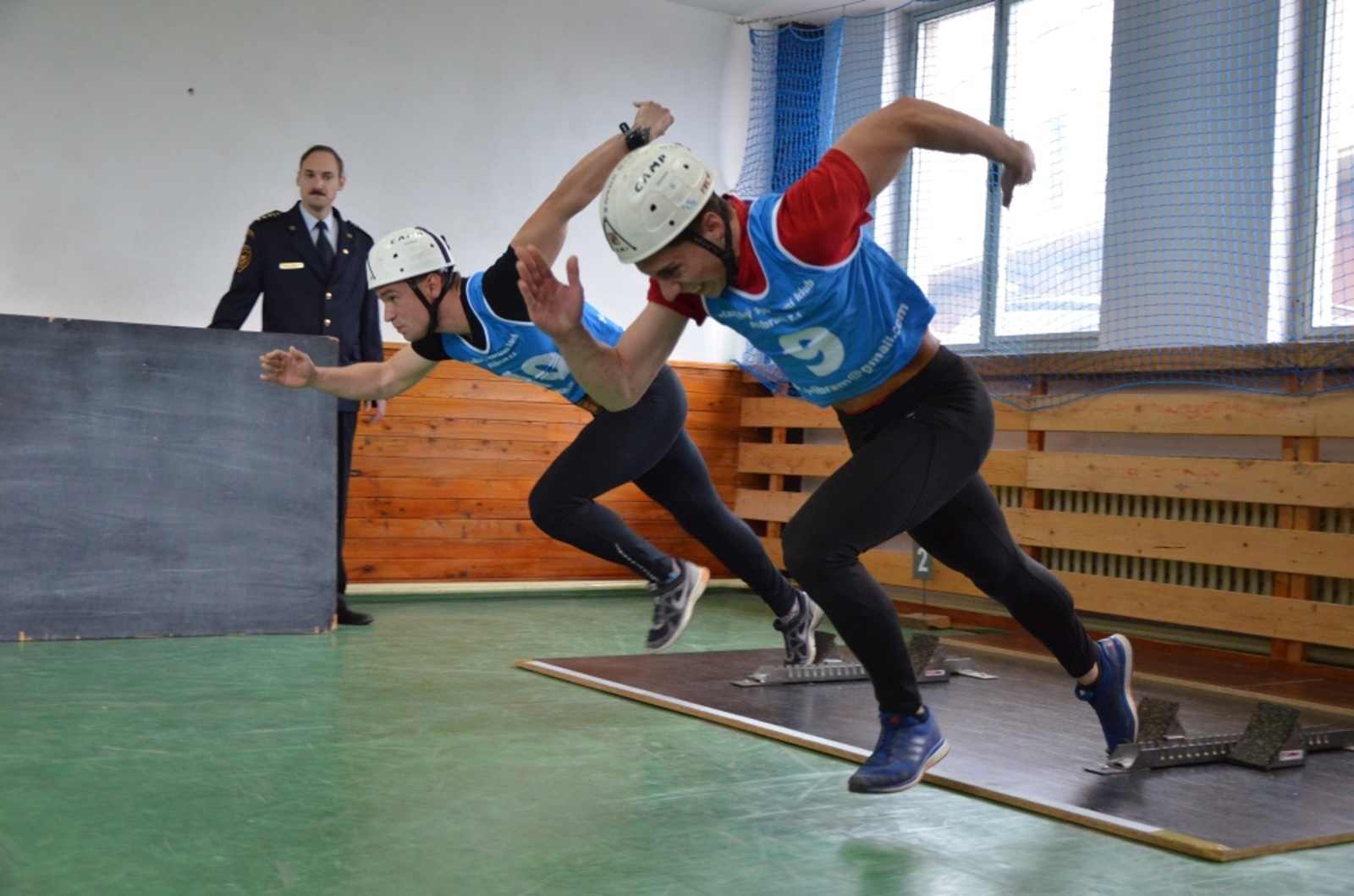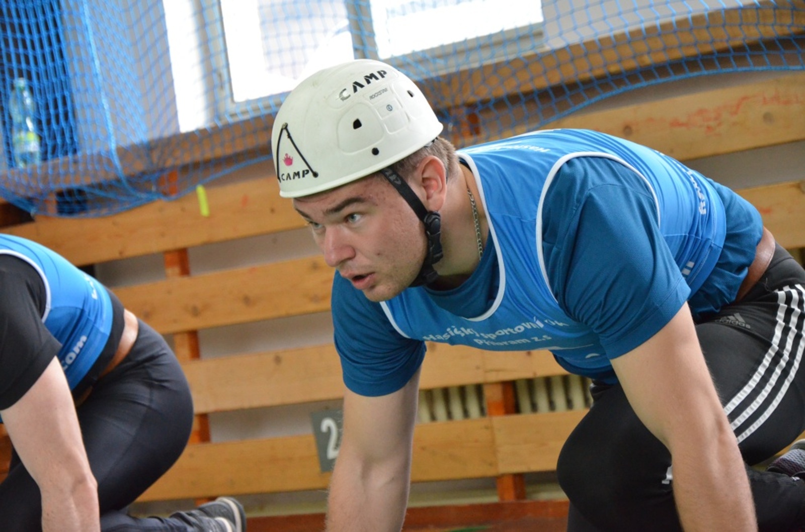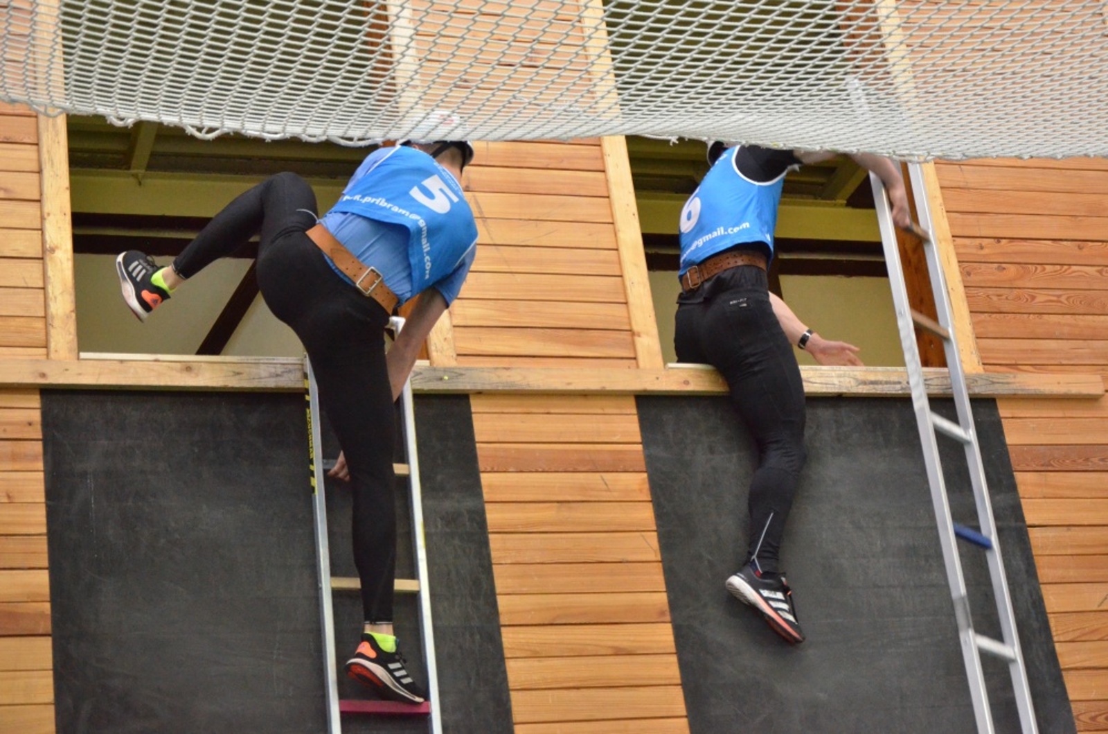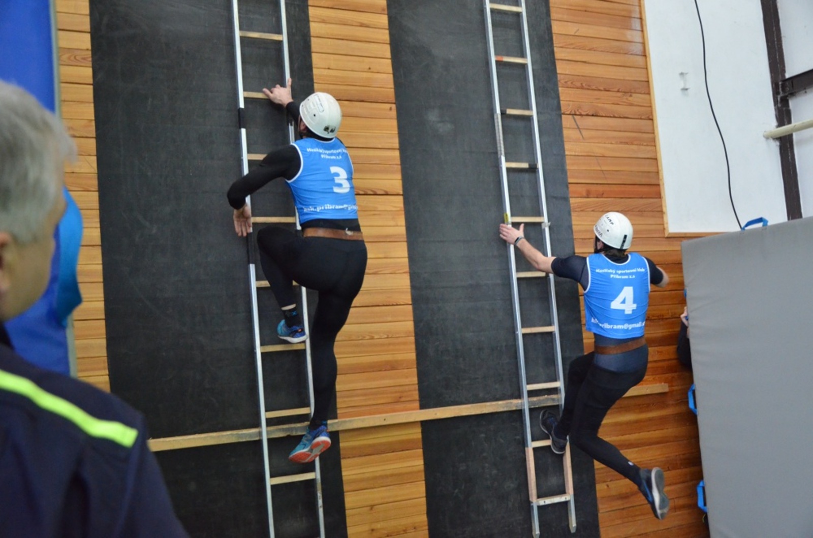 V sobotu 9. dubna se už po páté uskutečnila na stanici v Příbrami zcela ojedinělá halová soutěž ve výstupu do čtvrtého podlaží cvičné věže pomocí jednohákového žebříku.