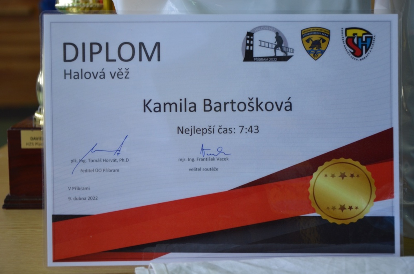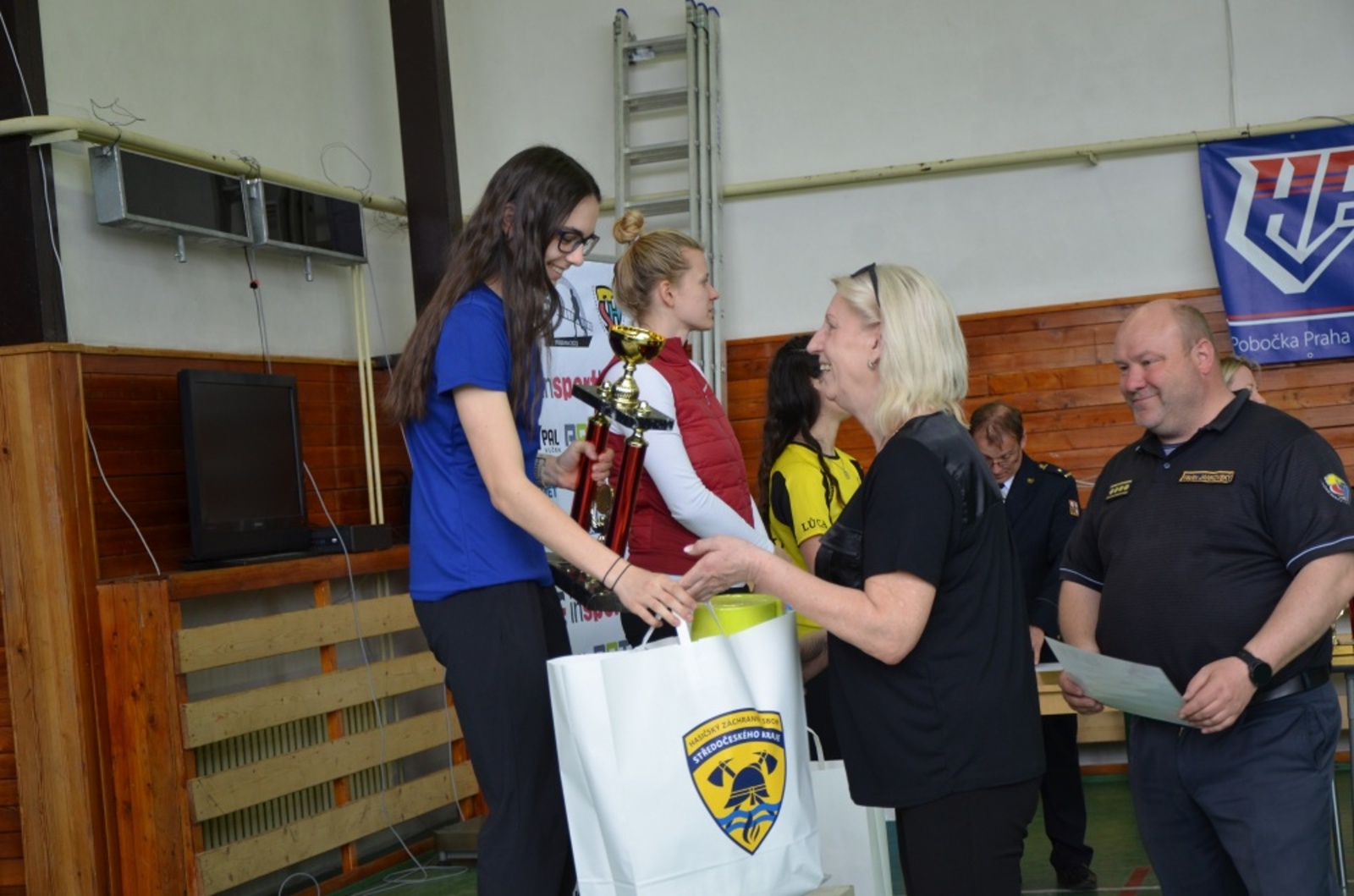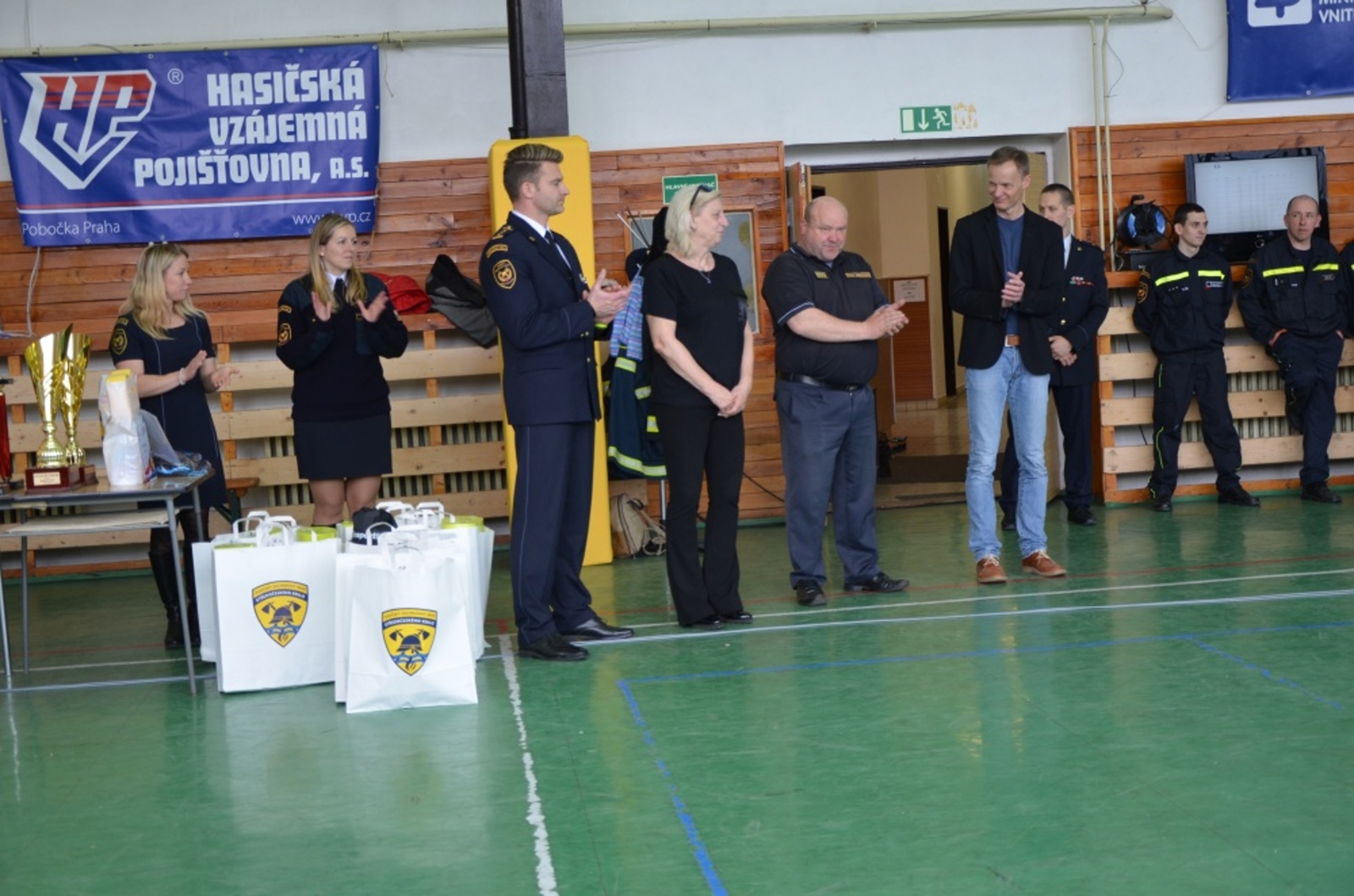 Při následném slavnostním nástupu s vyhodnocením převzali vítězové poháry a zajímavé věcné ceny z rukou nejen ředitele územního odboru Příbram, ale také místostarostky Příbrami Mgr. Zorky Brožíkové a starosty Dobříše pana Pavla Svobody. Nechybělo ani tradiční vyhodnocení nejrychlejšího ženského a mužského pokusu. Ženám bezkonkurenčně kralovala Kamila Bartošková a o nejrychlejší mužský čas se postaral Vladislav Filip.
