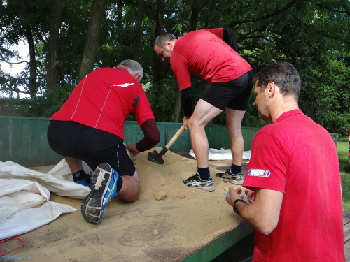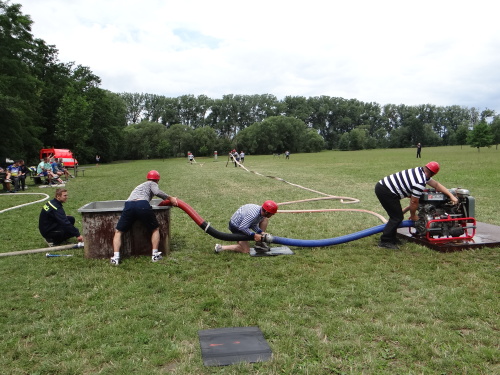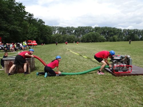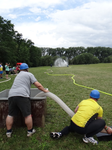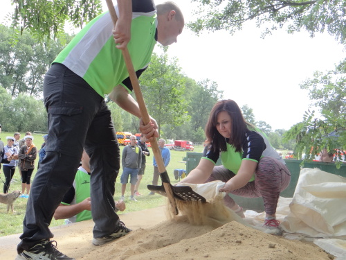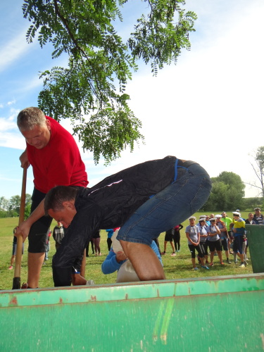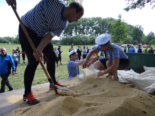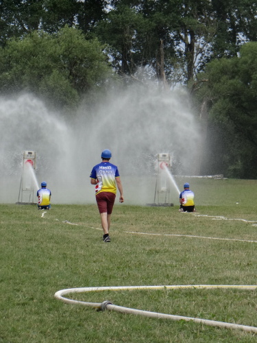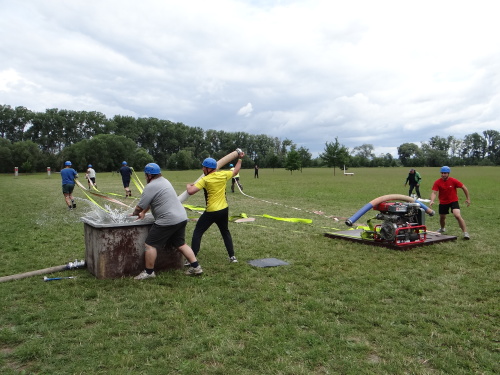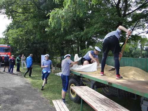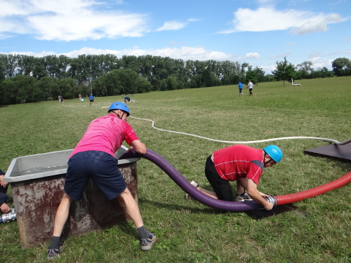 Tajnou disciplínou, která soutěž denních směn zahájila, bylo letos stavění protipovodňové hráze z pytlů s pískem. Pět pytlů leželo pevně jako základna, další čtyři byly připraveny hotové do druhé vrstvy a tři do třetí vrstvy musely soutěžní týmy zhotovit. Za méně kvalitní postavení hrázky či málo písku v pytlích se přičítalo 5, nebo až 10 trestných vteřin. 1. Přerov 1:16 min., 2. Tým snů-ředitelé 1:23 min., 3. ÚO Nový Jičín 1:25 min.