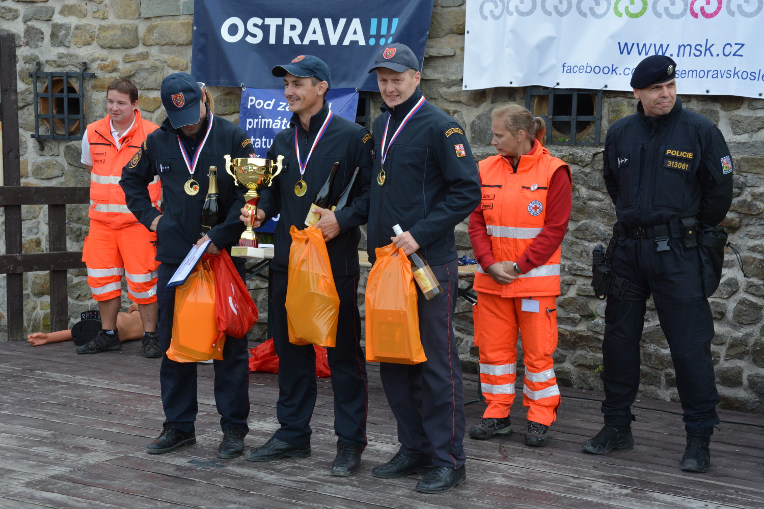 prvni-pomoc2.jpgTříčlenný tým profesionálních hasičů z Opavy (HZS MSK) s velitelem Tomášem Mikeskou zvítězil v soutěži nezdravotnických složek IZS v poskytování první pomoci, která se konala na konci září na Slezskoostravském hradě v rámci tradiční víkendové akce Hrad žije první pomocí.