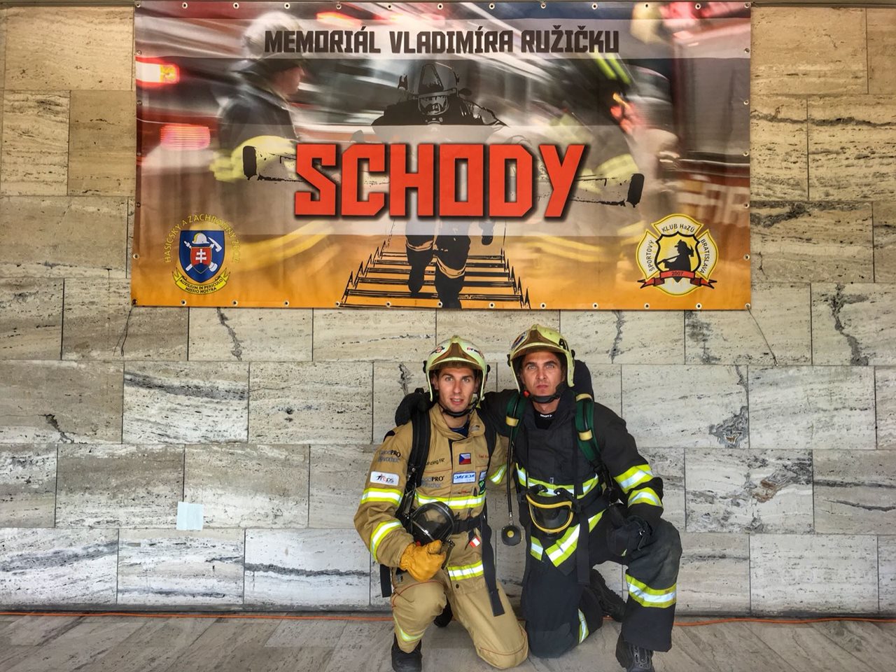 V pátek 17.8.2018 se uskutečnila soutěž v běhu do schodů s mezinárodní účastí v Bratislavě. Již devatenáctý ročník Memoriálu Vladimíra Ružičku SCHODY Bratislava 2018 tak už zná své vítěze. Soutěže se zúčastnilo celkem 56 dvojic ze Slovenska a okolních států. Českou republiku reprezentovaly dvě dvojice profesionálních hasičů, a to Petr Smilek ze Zlínského kraje společně s Pavlem Kouříkem z Plzeňského kraje a dvojice z Pardubického kraje. Úkolem všech závodících dvojic bylo vyběhnout v plné výstroji s aktivním dýchacím přístrojem po schodech výškové budovy až do 22 patra. Závod se konal za stižených podmínek, neboť některé úseky trati byly v úplné tmě. Hasiči tak i několik pater po sobě běželi, aniž by cokoliv viděli. Jednalo se tak o simulaci reálného zásahu. Přitom se oba muži z dvojice museli ještě navzájem hlídat a být od sebe maximálně na vzdálenost jednoho ramene schodiště. To byl další zásadní faktor, ovlivňující výkony závodníků. Soutěžní dvojice měly pouze jeden ostrý výběh a počítal se čas druhého z dvojice. Tým ve složení Petr Smilek a Pavel Kouřík se závodu účastnil letos poprvé. Předvedl však neuvěřitelný výkon a s časem 2 minuty a 38 sekund skončil na prvním místě. Slovenští hasiči obsadili druhou příčku a třetí místo opět patřilo zástupcům České republiky, a to tentokrát závodníkům z Pardubického kraje. Zdroj : por. Mgr. Lucie Javoříková, tisková mluvčí HZS Zlínského kraje Foto: HZS Zlínského kraje FOTOGALERIE