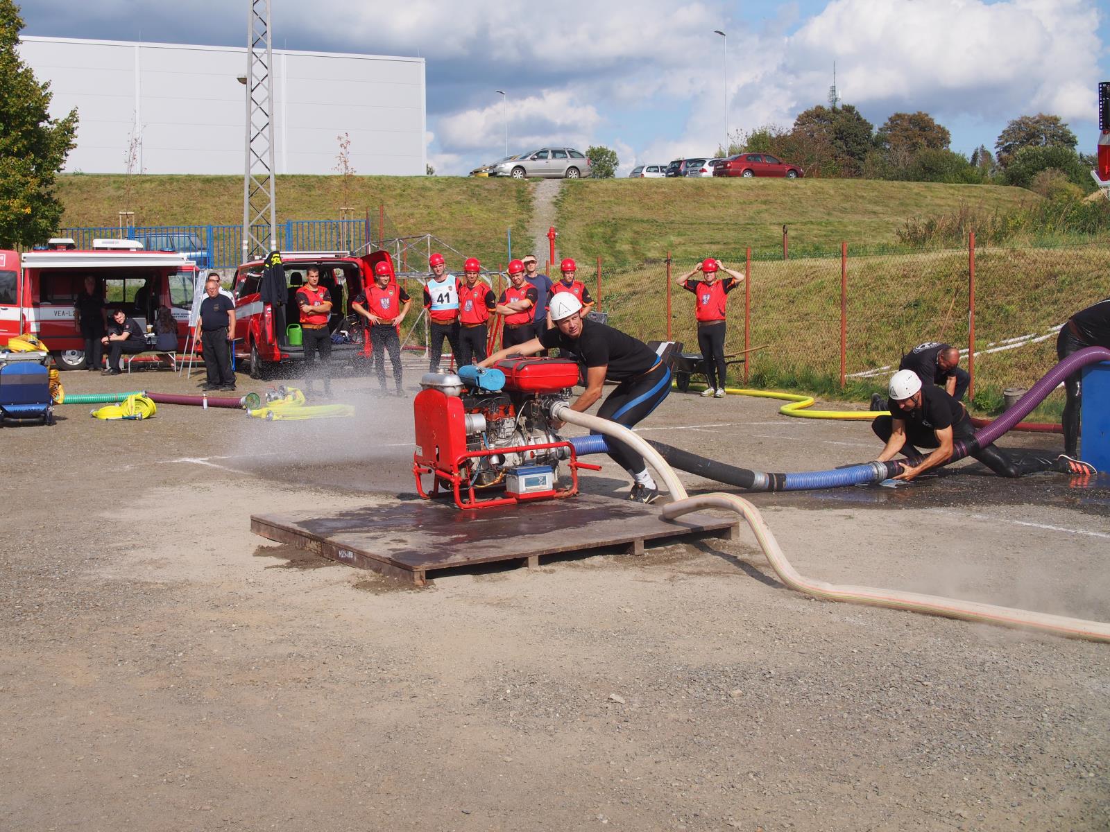 Za slunečného počasí se před desátou hodinou dopoledne rozběhla soutěž, do které se zapojilo devět soutěžních družstev z HZS Kraje Vysočina, HZS Jihomoravského kraje a HZS Pardubického kraje. První soutěžní disciplínou byl běh na 100 metrů s překážkami. První tři příčky obsadili soutěžící z územního odboru Třebíč. Následoval výstup do 4. podlaží cvičné věže. I v této disciplíně se dařilo soutěžícím z Vysočiny. Soutěžící z Třebíče obsadili první a třetí příčku, stříbro vybojoval soutěžící z Pelhřimova. Třetí soutěžní disciplínou měl být požární útok. Bohužel se vyskytl technický problém s časomírou a právě z tohoto důvodu byla tato disciplína zrušena.