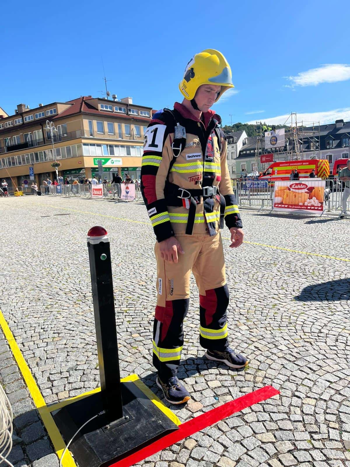 Soutěž TFA je považována za extrémní prověrku fyzických schopností. Závodníci musí v plné zásahové výstroji a s dýchací technikou zvládnout rozvinutí hadic, hammer box s 80 údery palicí, přenášení závaží tunelem, transport figuríny i překonání bariéry. Vrcholem soutěže v Příbrami byl výběh na Svatohorské schody – 343 schodů dlouhých přes 400 metrů.