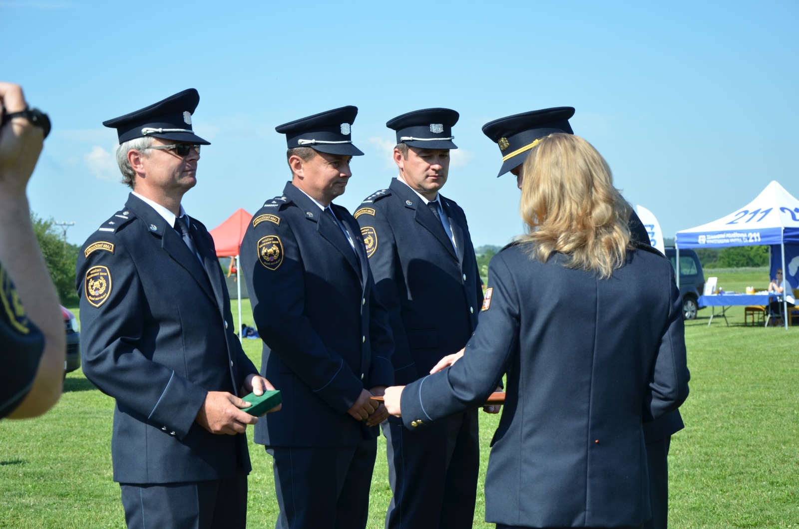 V devět hodin ráno při slavnostním nástupu předal ředitel územního odboru Kutná Hora plk. Ing. Jiří Pokorný příslušníkům územního odboru Kutná Hora medaile za věrnost II. a III. stupně. Poté všechny závodníky, kterých se letos sešlo 76, pozdravili a mnoho štěstí a sportovních úspěchů popřáli senátor Senátu Parlamentu České republiky Ing. Jaromír Strnad, starosta města Čáslavi JUDr. Vlastislav Málek, starostka obce Krchleby Bc. Bohumila Jeřichová a zastupitelka města Kutná Hora Ing. Kateřina Daczická.