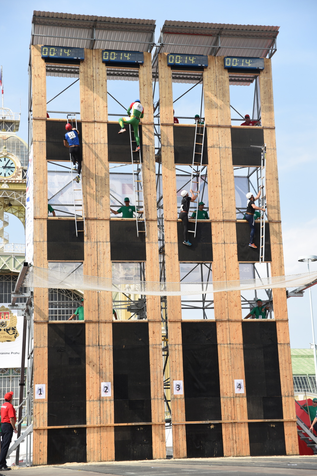 První soutěžní den, pátek, zahájili závodníci výstupem do 4. podlaží cvičné věže. Tato část závodu proběhla na pražském Výstavišti, přímo před Průmyslovým palácem. Tam se také následně pokračovalo odpoledním slavnostním ceremoniálem k zahájení celého Mistrovství.