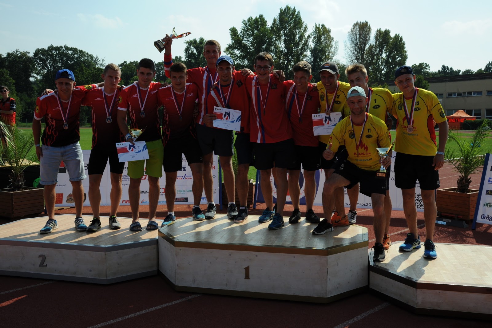 Bronzovou příčku obsadili ve štafetě na 4x100 metrů dobrovolní hasiči z Michálkovic, zaběhli ji za 57,51 sekund.