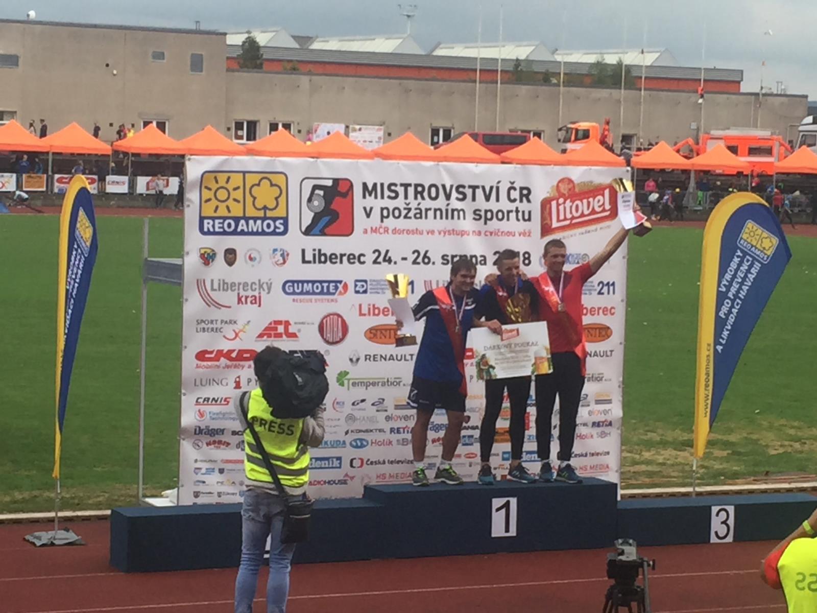 Absolutním mistrem ČR v běhu na 100 m s překážkami se stal Pavel Krpec z HZS Moravskoslezského kraje, čas 15,02 s,