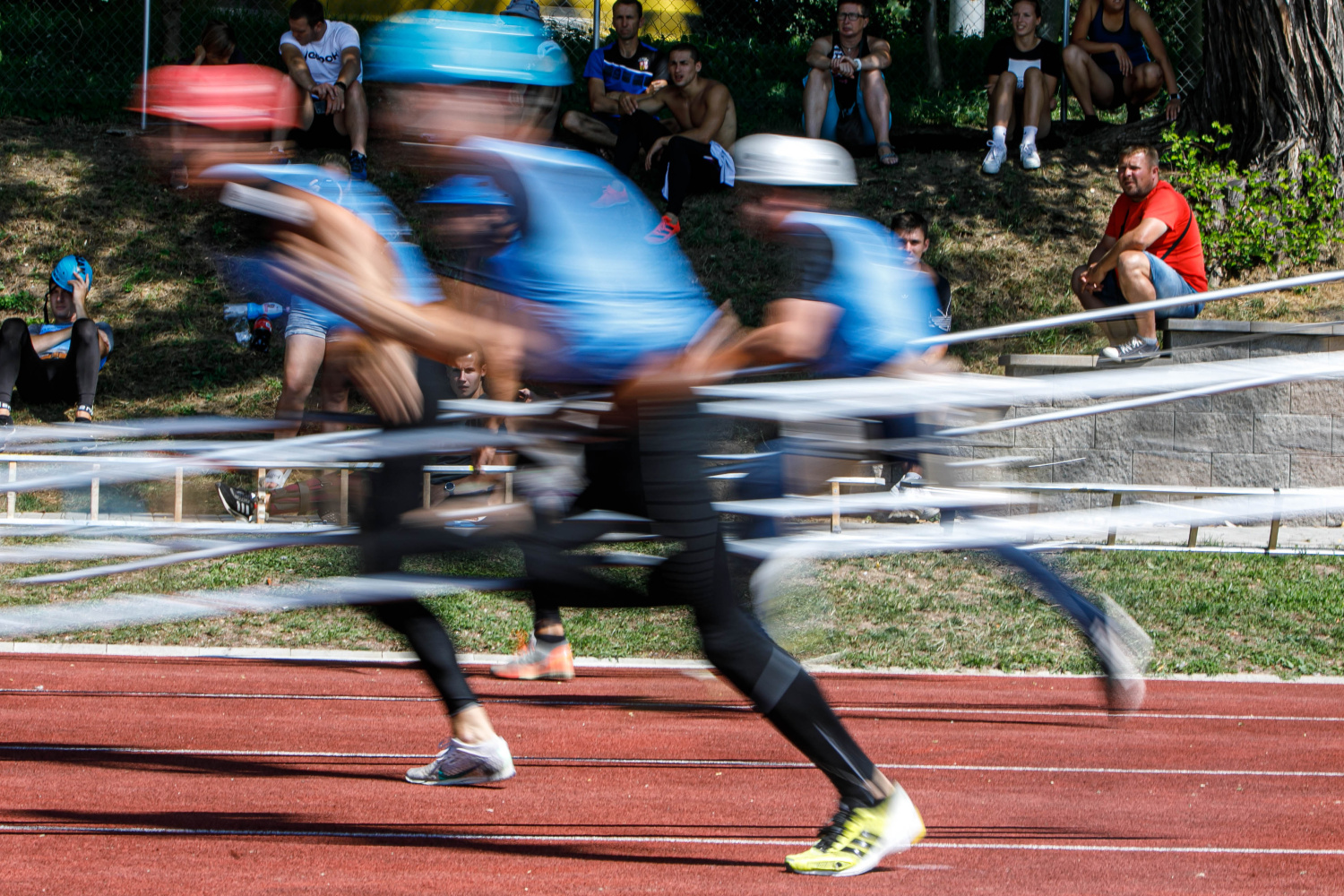 Na stometrové trati se přes všechny překážky dostal do cíle nejrychleji Daniel Klvaňa (HZS MSK), když ve finálovém běhu protnul cílovou čáru v čase 15,39 s. Těsně za ním skončil na druhém místě domácí Patrik Kligl (HZS KHK) a třetí doběhl Lukáš Kroupa (SDH Pardubice – Polabiny). Finálovou čtyřku doplnil Jiří Škodný (HZS KHK).