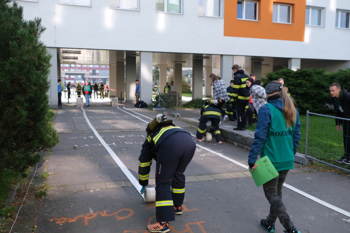 Studentky a pak studenti absolvovali v hasičském vybavení, včetně tlakové lahve jako zátěže (byla povolena sportovní obuv), náročnou trať, rozdělenou do čtyř úseků s finálním výběhem na vrchol výškové budovy kolejí – až do 13. patra. Nejprve jednotlivci (sedm desítek), pak štafety. Ty byly na programu ve čtvrtek odpoledne a mělo se do nich zapojit celkem 18 mužských a ženských štafet.